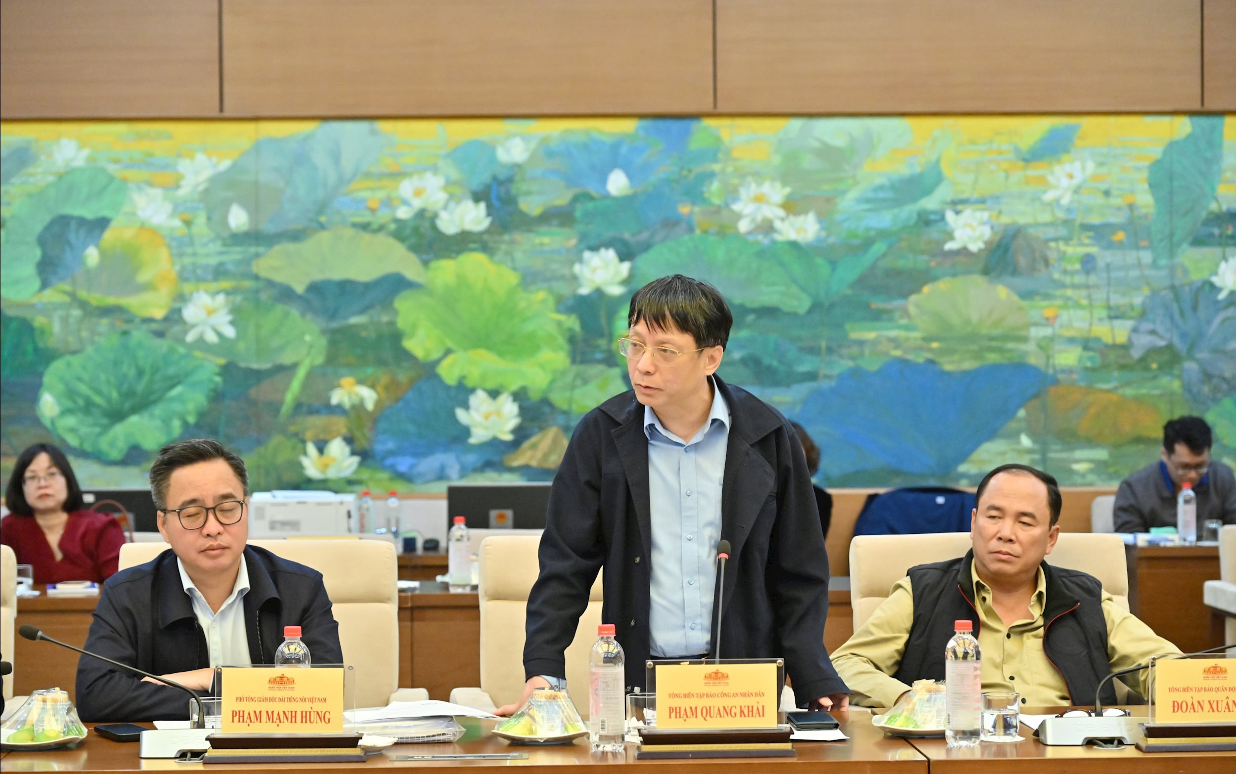 Tổng Thư ký Quốc hội, Chủ nhiệm Văn phòng Quốc hội Lê Quang Mạnh - Phó Trưởng ban Thường trực Ban Chỉ đạo, Trưởng Ban Tổ chức Giải Diên Hồng; Tổng Biên tập Báo Nhân dân, Phó Trưởng Ban Tuyên giáo và Dân vận Trung ương, Chủ tịch Hội Nhà báo Việt Nam, Chủ tịch Hội đồng chấm Chung khảo Giải Diên Hồng Lê Quốc Minh; Phó Chủ tịch Thường trực Hội Nhà báo Việt Nam Nguyễn Đức Lợi, Phó Chủ tịch Hội đồng chấm Chung khảo Giải Diên Hồng chủ trì cuộc họp