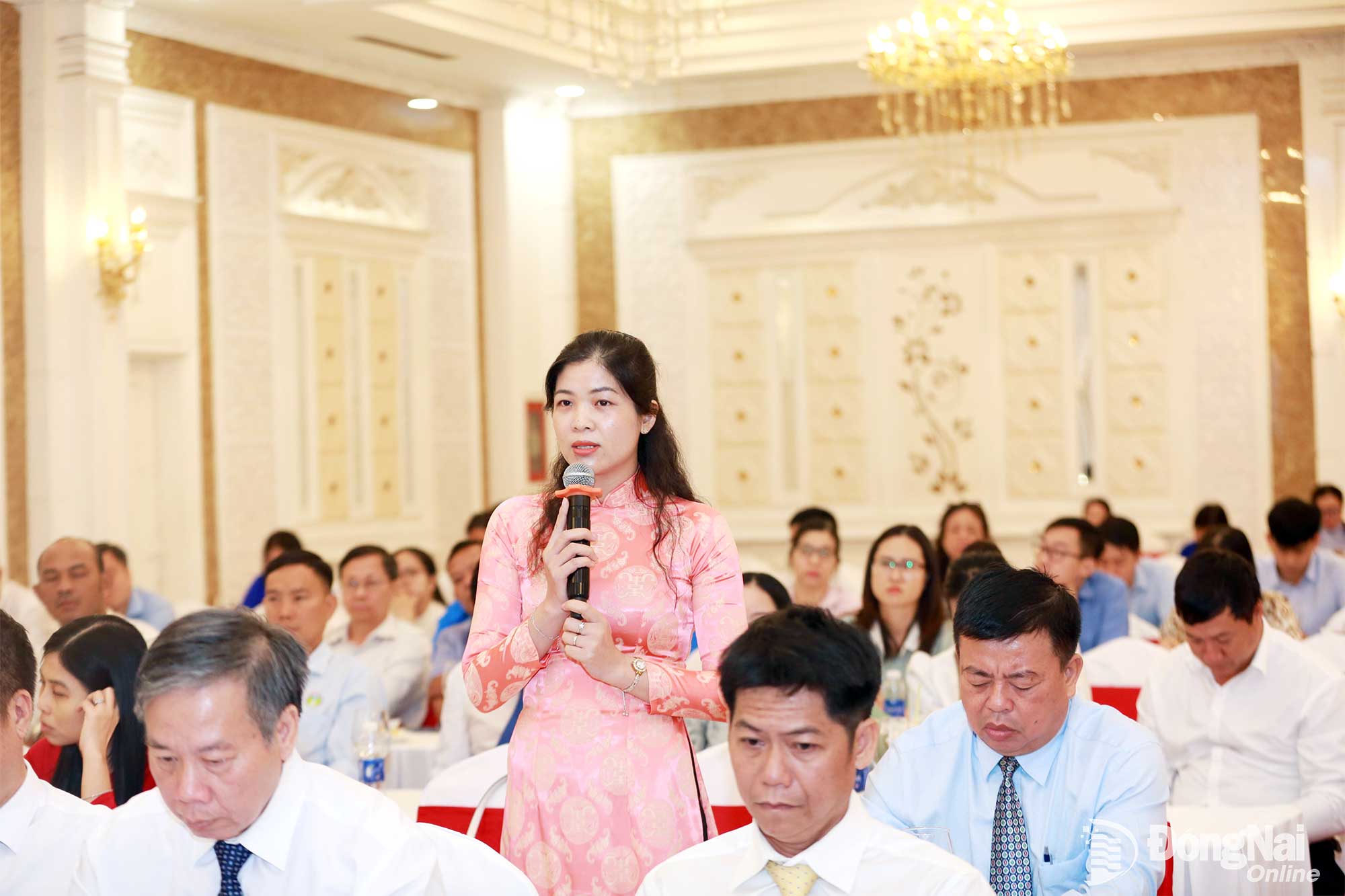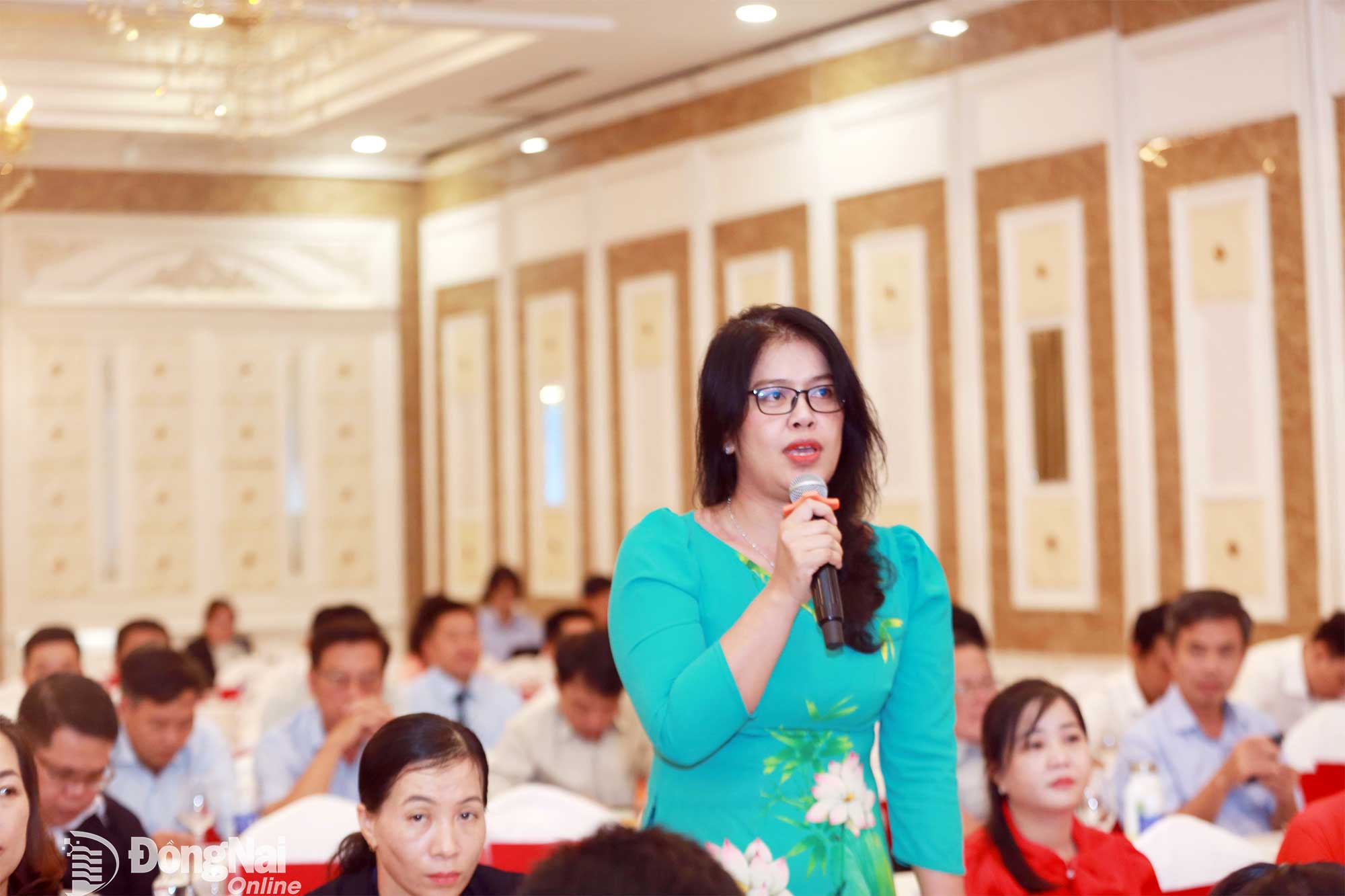 Tỉnh ủy viên, Phó Bí thư Đảng ủy UBND tỉnh Đồng Nai Phạm Thụy Luân phát biểu tại buổi họp mặt. Ảnh: Huy Anh