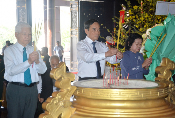 Các đồng chí lãnh đạo, đại biểu dâng hương tại buổi lễ.