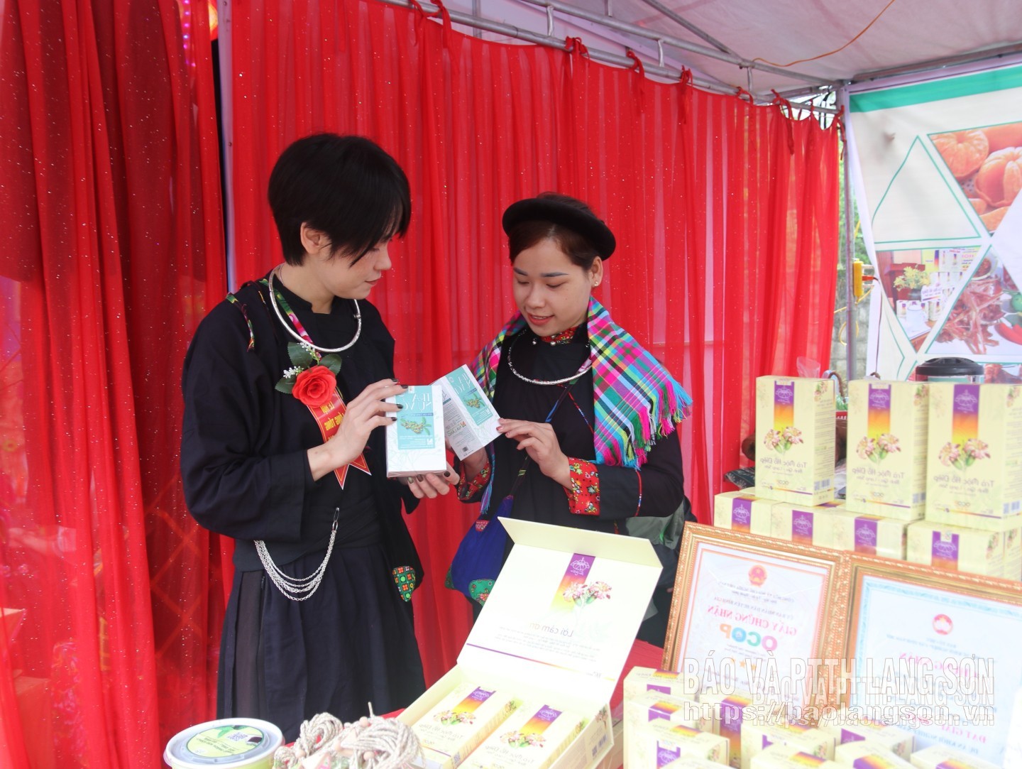 Đại diện Hợp tác xã Nông lâm nghiệp Nà Làng giới thiệu sản phẩm đến khách hàng
