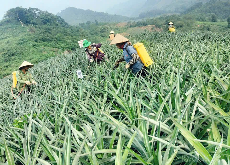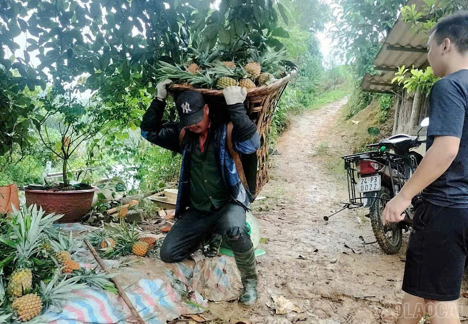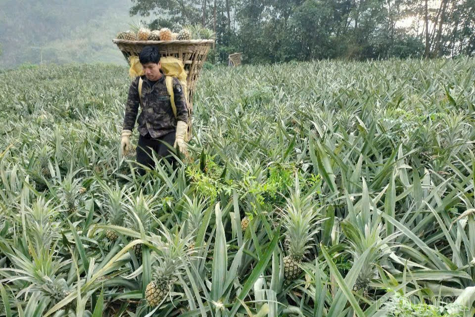 Nông dân Bản Lầu thu hoạch dứa.