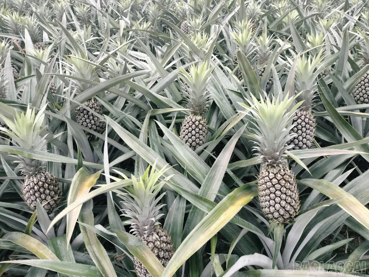 Đồi dứa xanh mướt với những quả to.