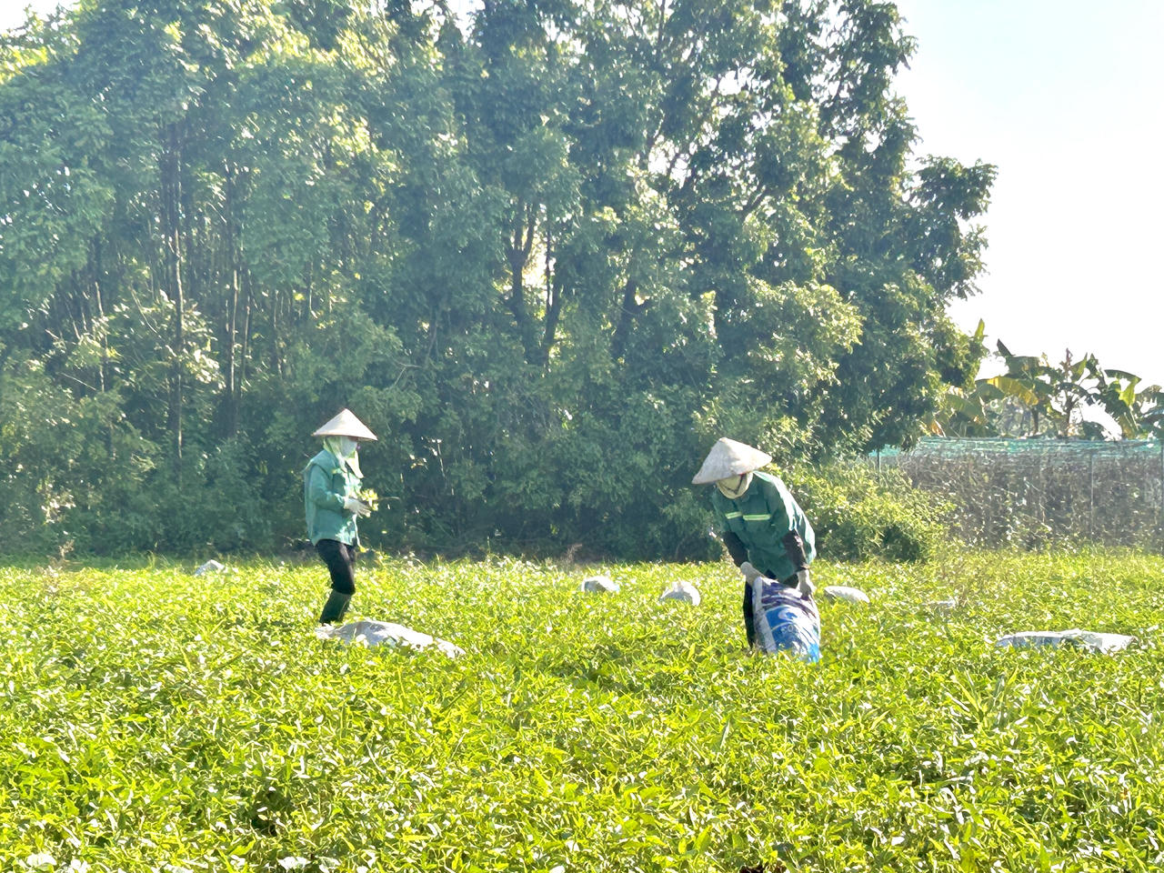 Bà con nông dân thu hoạch rau. Ảnh: Ngọc Nga