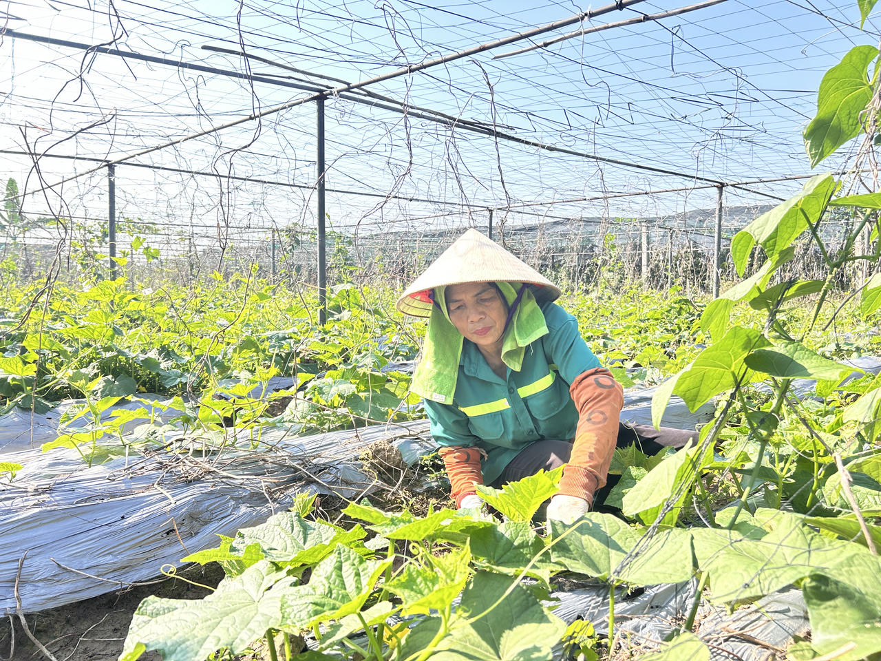 Vườn rau của chị đang được sản xuất theo hướng mô hình nông nghiệp tuần hoàn, khép kín, từ khâu cây giống, trồng, chăm sóc, thu hoạch đến tiêu thụ nông sản. Cây được chăm bón bằng phân giun trùn quế do HTX sản xuất và phân bón từ các phụ phẩm nông nghiệp, phân chuồng qua xử lý.