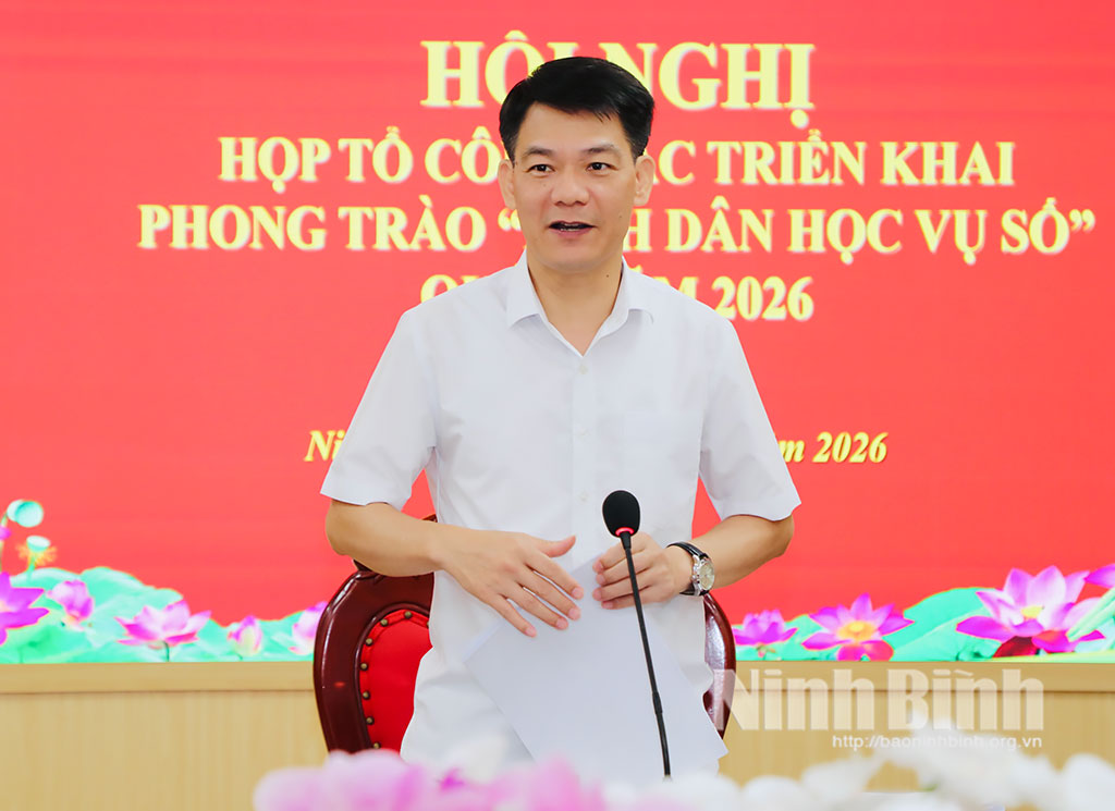 Phát biểu kết luận hội nghị, đồng chí Nguyễn Đức Toàn, Ủy viên Ban Thường vụ Tỉnh ủy, Trưởng Ban Tuyên giáo và Dân vận Tỉnh ủy, Tổ trưởng Tổ công tác triển khai phong trào “Bình dân học vụ số” trên địa bàn tỉnh nhấn mạnh: Ninh Bình là một trong những địa phương triển khai rất sớm phong trào “Bình dân học vụ số”, trong đó đã tổ chức lễ phát động phong trào “Bình dân học vụ số’’, xây dựng rõ kế hoạch, giao nhiệm vụ rõ cho từng ngành và địa phương. Căn cứ vào quy chế phân công chức năng nhiệm vụ, các thành viên của Tổ công tác và các ngành thành viên thực hiện tốt nhiệm vụ được giao.