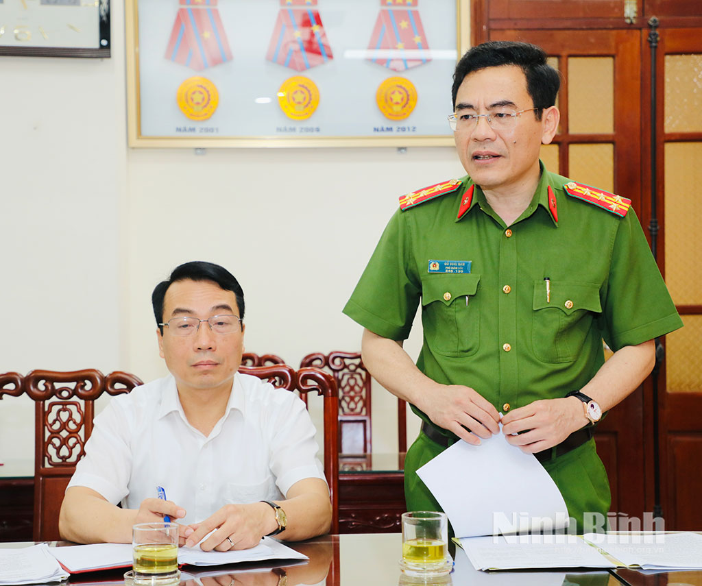 Lãnh đạo Công an tỉnh phát biểu tại hội nghị.