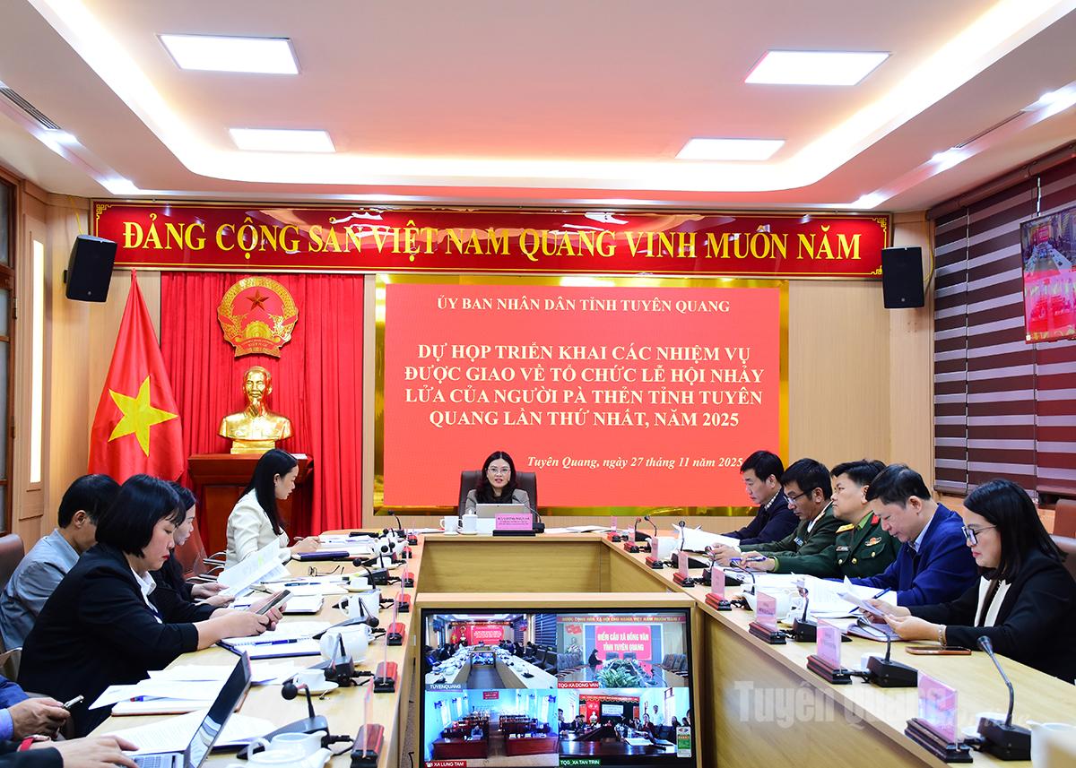 Tại buổi họp, các đại biểu đã thảo luận, đưa ra các giải pháp phù hợp để việc tổ chức các môn thi và lễ nhảy lửa trong khuôn khổ Chương trình nhảy lửa của người Pà Thẻn tỉnh Tuyên Quang năm 2025.