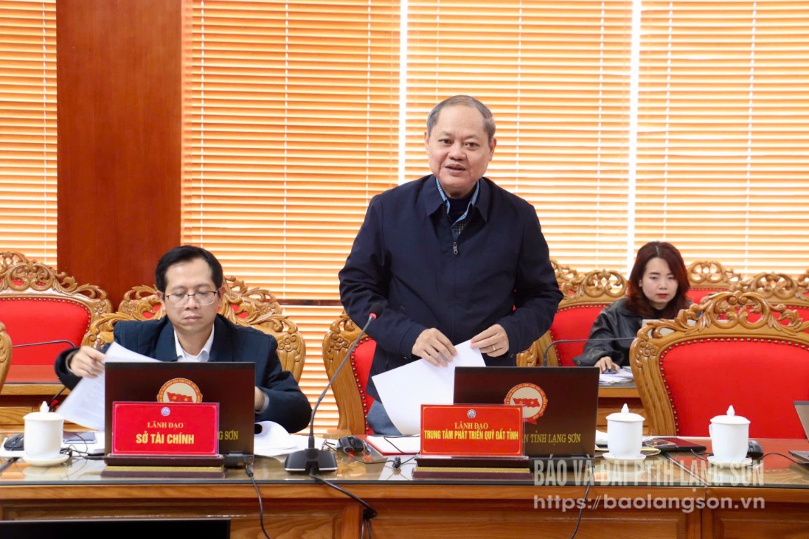 Lãnh đạo Trung tâm Phát triển quỹ đất tỉnh phát biểu tại cuộc họp