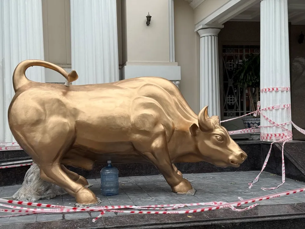 Biểu tượng "bò tấn công" tại HOSE hiện đang trong quá trình hoàn thiện. Biểu tượng bò và gấu cũ được đưa về trưng bày tại Trung tâm dữ liệu của HOSE tại Công viên phần mềm Quang Trung.