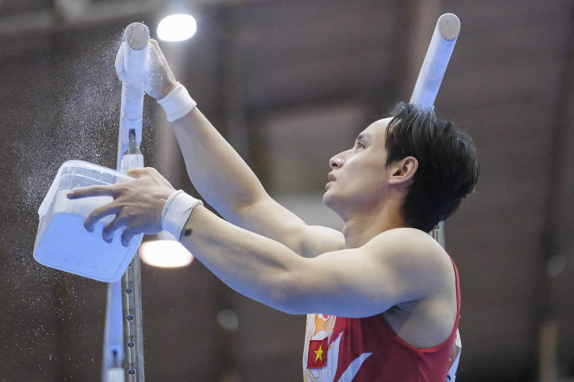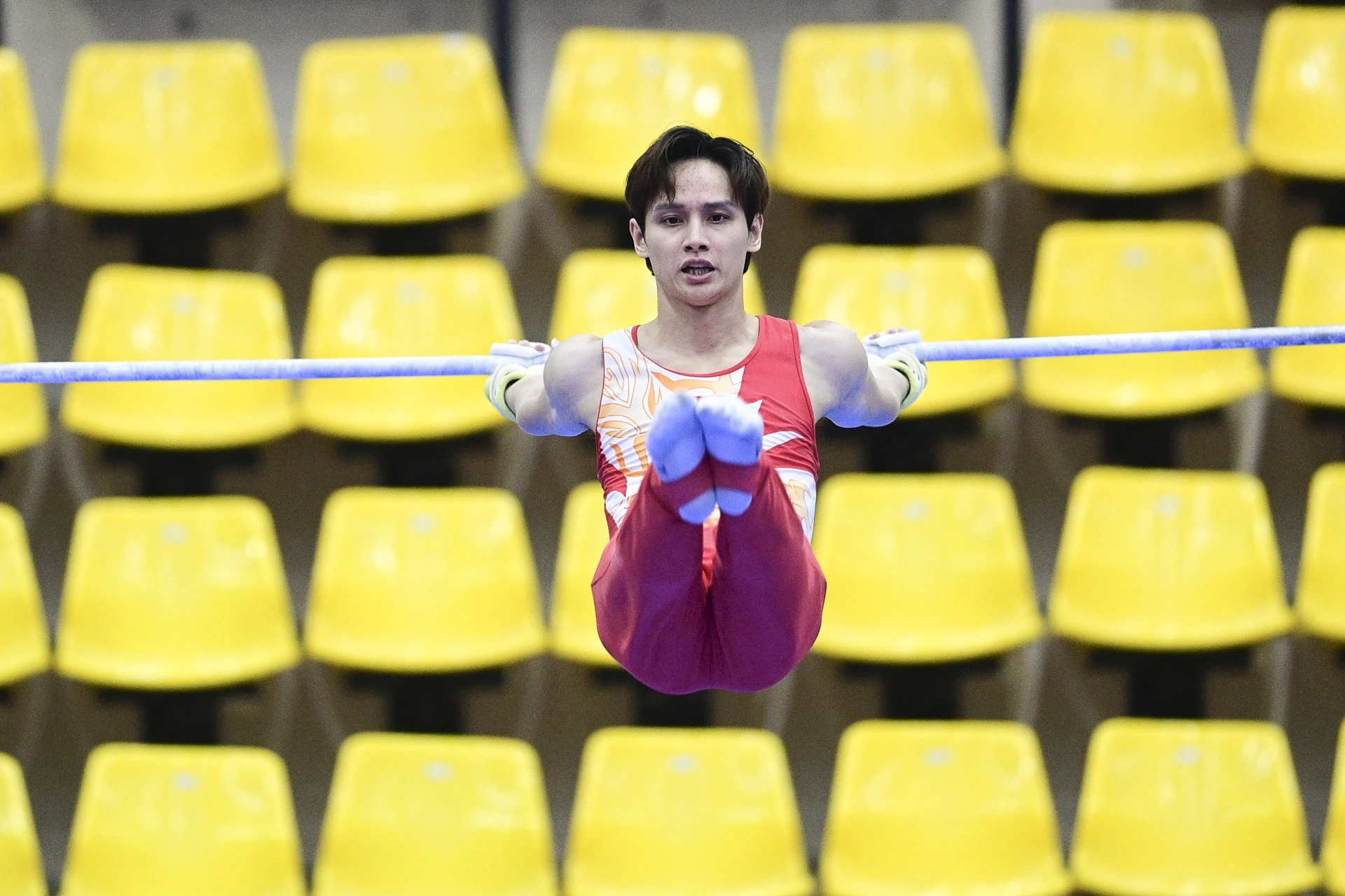 Trưa chiều 12/12, Đinh Phương Thành bước vào chung kết nội dung xà đơn nam, xà kép nam tại SEA Games 33.