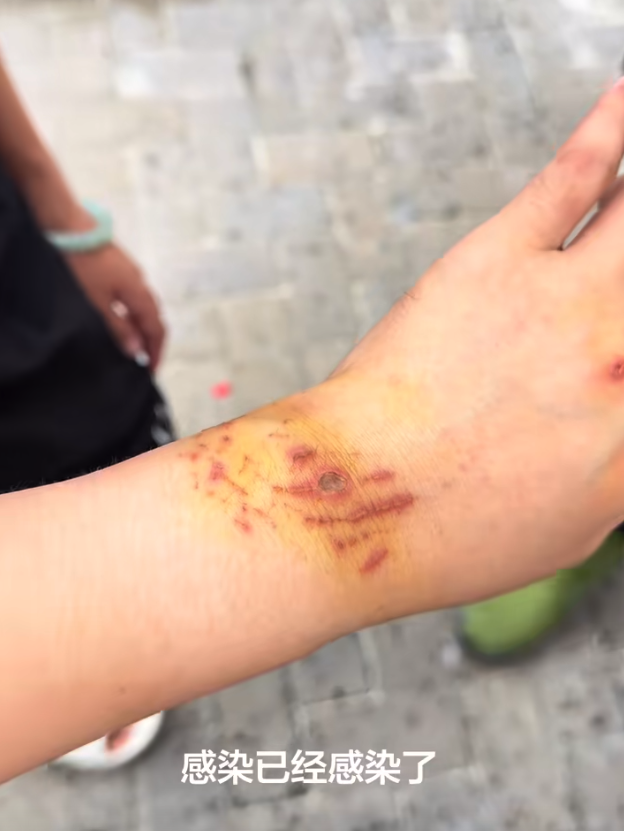 Xiaoyu cho biết, sau khi trở về nhà trọ vào buổi tối hôm đó, bạn cô nói rằng, tình trạng của cô khá nghiêm trọng và cần phải đến bệnh viện, nếu không tình trạng nhiễm trùng có thể trở nên rất nghiêm trọng. Sau đó, cô đến bệnh viện địa phương để rửa vết thương và tiêm phòng uốn ván. Một đoạn video do Xiaoyu đăng tải cho thấy cảnh cô đang được điều trị tại bệnh viện, có một lỗ thủng to bằng hạt đậu xanh trên cổ tay phải của cô, vẫn đang chảy máu, cùng với các vết xước gần đó.