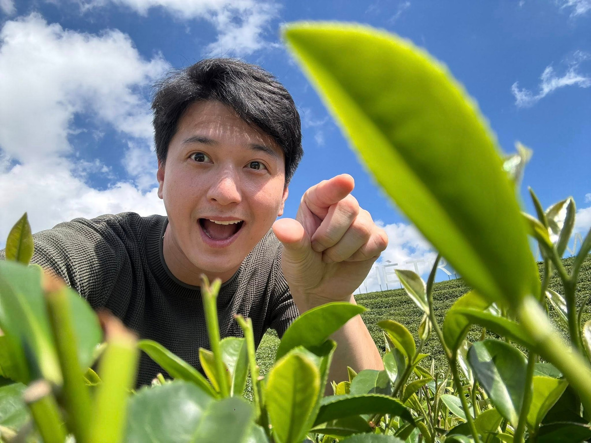 Diễn viên Huỳnh Anh lên núi hái chè. Ảnh: FB Huỳnh Anh