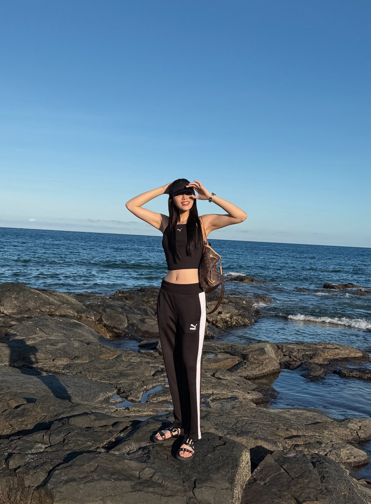 Hoa hậu Kỳ Duyên diện đồ khỏe khoắn tôn bụng phẳng khi chụp hình ở biển Phú Yên. Ảnh: FB Nguyen Cao Ky Duyen