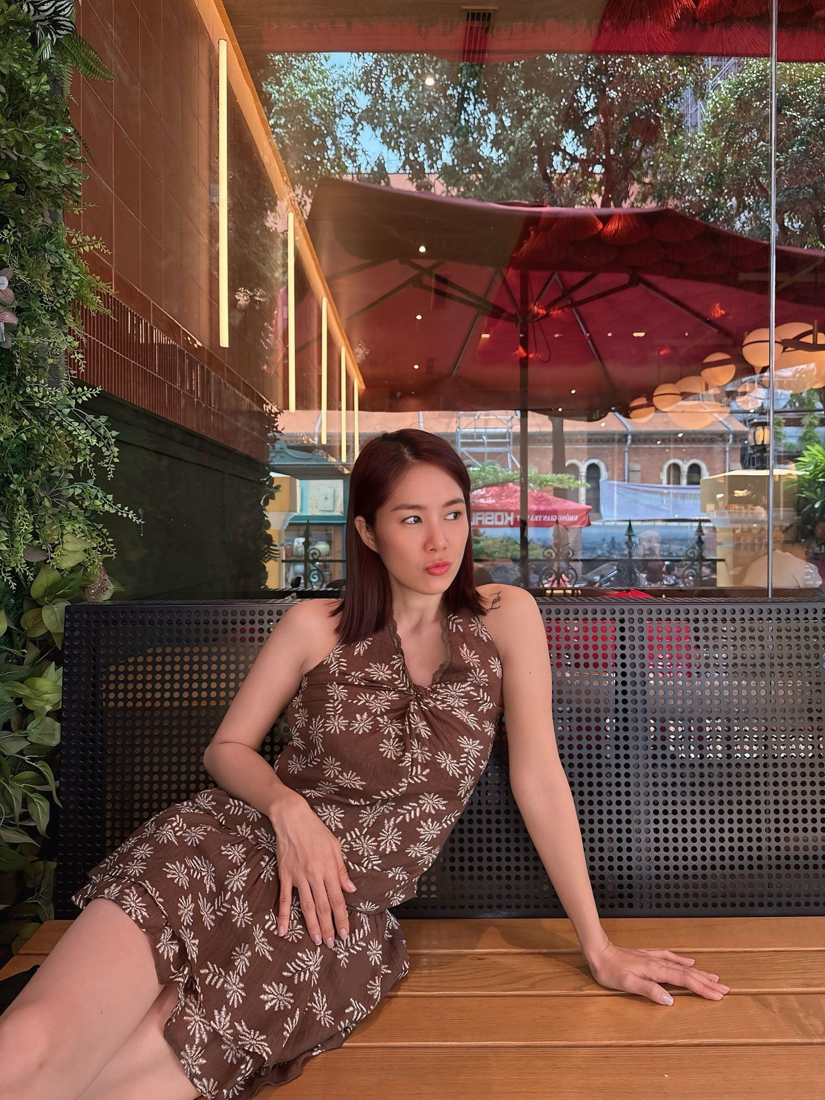 Diễn viên Lê Phương lê la cà phê vào cuối tuần trời trong xanh. Ảnh: FB Lê Phương