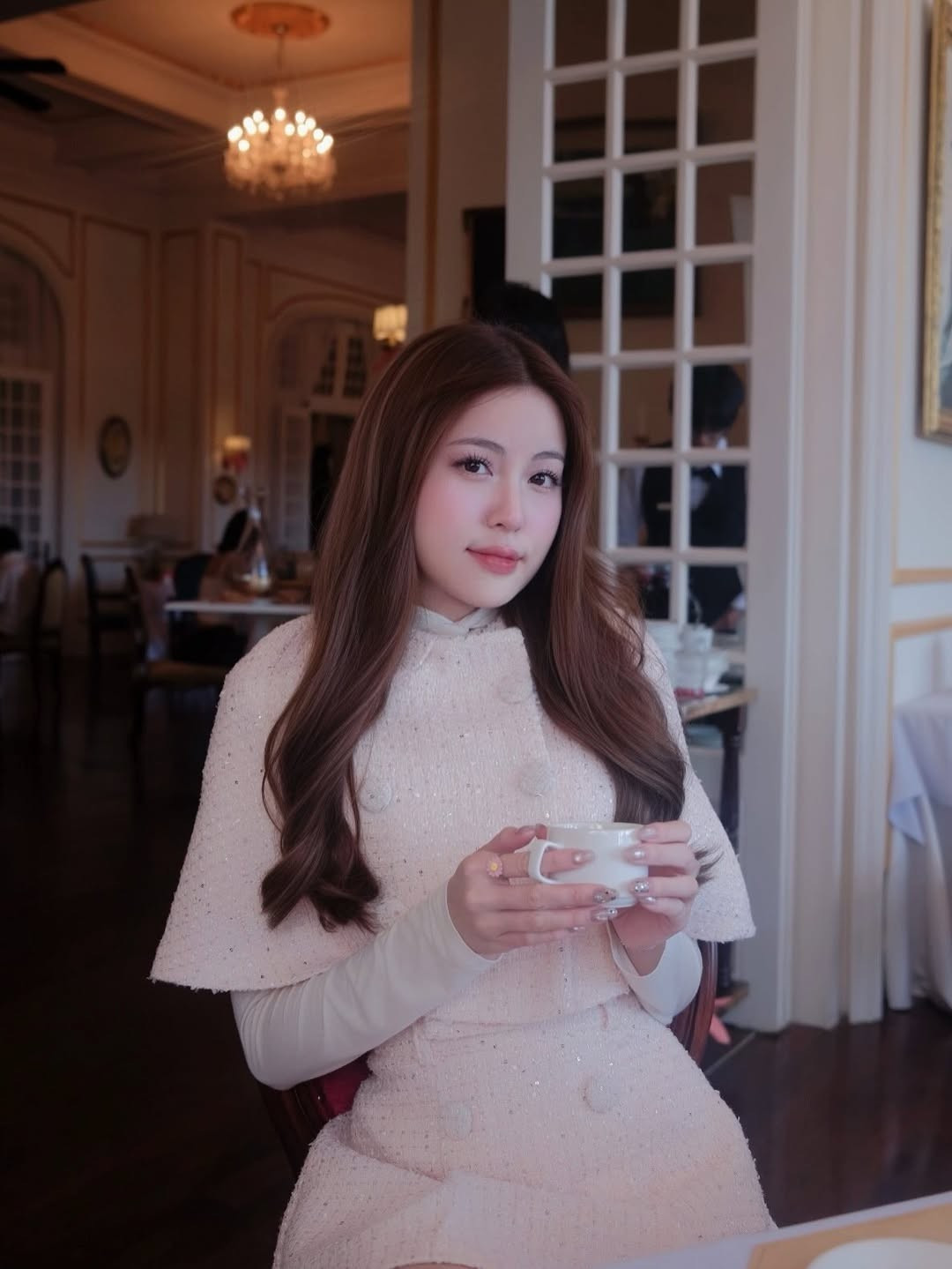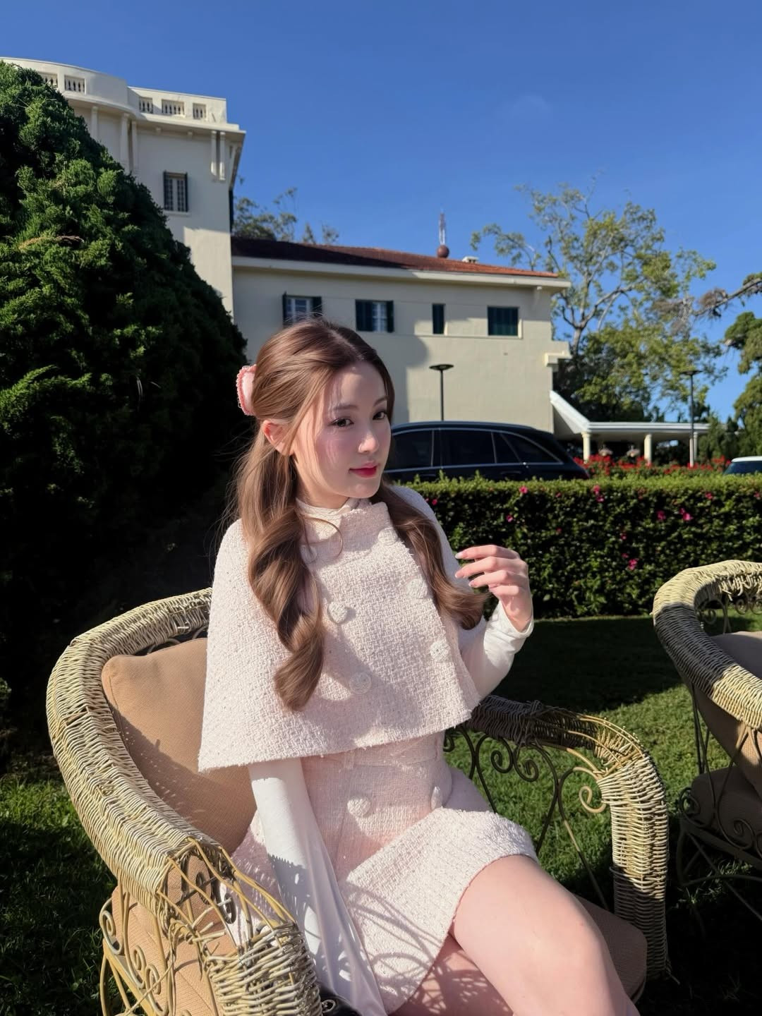 Kiểu tóc uốn nhẹ, cài nơ hoặc hoa nhỏ càng làm nổi bật phong cách nữ tính, ngọt ngào – hình ảnh đã trở thành “thương hiệu” của Tăng Mỹ Hàn trong lòng người hâm mộ.