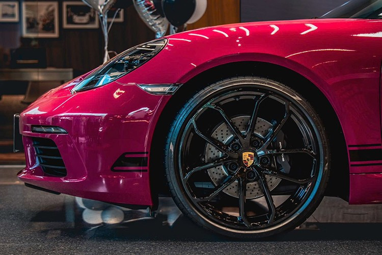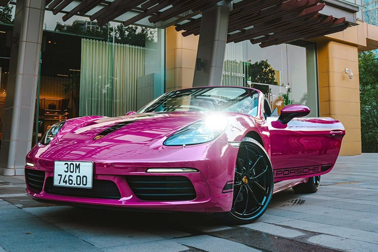 Một chiếc xe thể thao Porsche 718 Boxster Style Edition vừa mới được bàn giao cho vị khách là cô chủ tiệm bánh ở Hà Nội, điểm đặc biệt nằm ở chỗ, ngoại thất chiếc xe được sơn màu hồng Ruby Star Neo rất đẹp mắt.