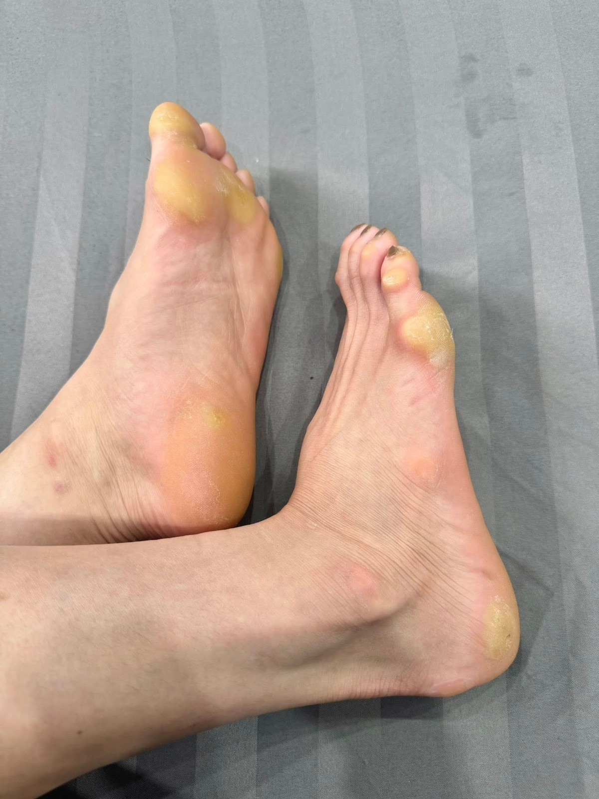 Trong khung ảnh, đôi chân của 'hot girl của đội tuyển nữ Việt Nam' Hoàng Thị Loan xuất hiện với những vùng da dày, chai sạn, thậm chí biến dạng ở các ngón - dấu ấn của hàng nghìn giờ tập luyện và thi đấu khắc nghiệt.