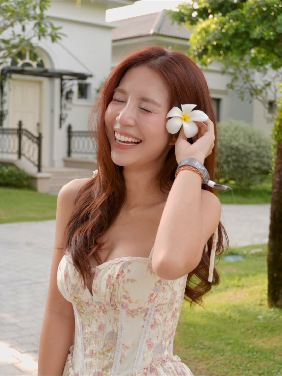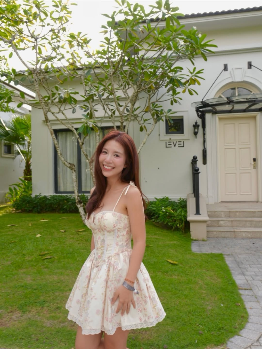 Cô diện chiếc váy hai dây in hoa nhí màu kem với thiết kế corset ôm sát, khéo léo khoe vòng một đầy đặn và xương quai xanh quyến rũ. (Ảnh: IGNV)