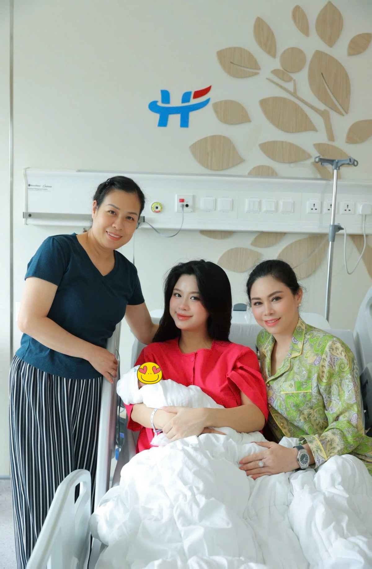 Trước đó, mẹ Hàn Hằng cũng đăng ảnh con gái khi vừa sinh em bé ở bệnh viện. Trong khoảnh khắc này, cả mẹ ruột và mẹ chồng Hàn Hằng đều có mặt, cùng cô chăm sóc em bé.
