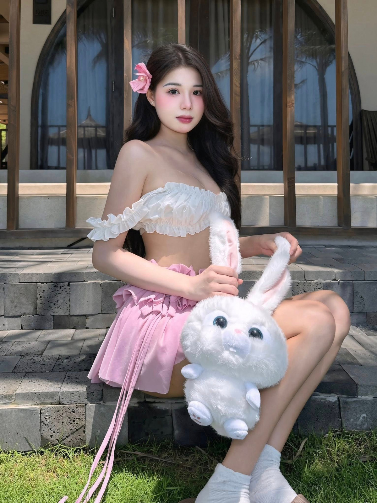 Trong bộ ảnh mới, Trà Hạ Ly nàng diện một bộ bikini quyến rũ, pose dáng tự nhiên dưới tán cây xanh mát, tận dụng ánh nắng vàng và không gian resort nhiệt đới để tôn lên nét tươi trẻ, phóng khoáng.