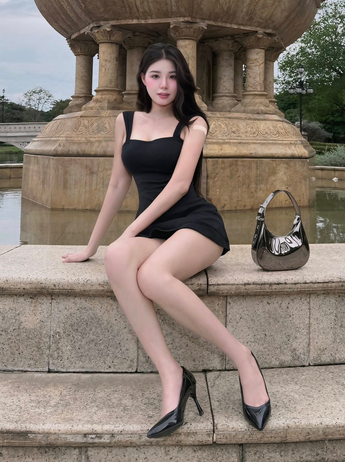 Không chỉ thu hút nhờ nhan sắc, cách chọn bối cảnh, thần thái tươi tắn cùng bộ trang phục táo bạo của cô nàng cũng được đánh giá cao.