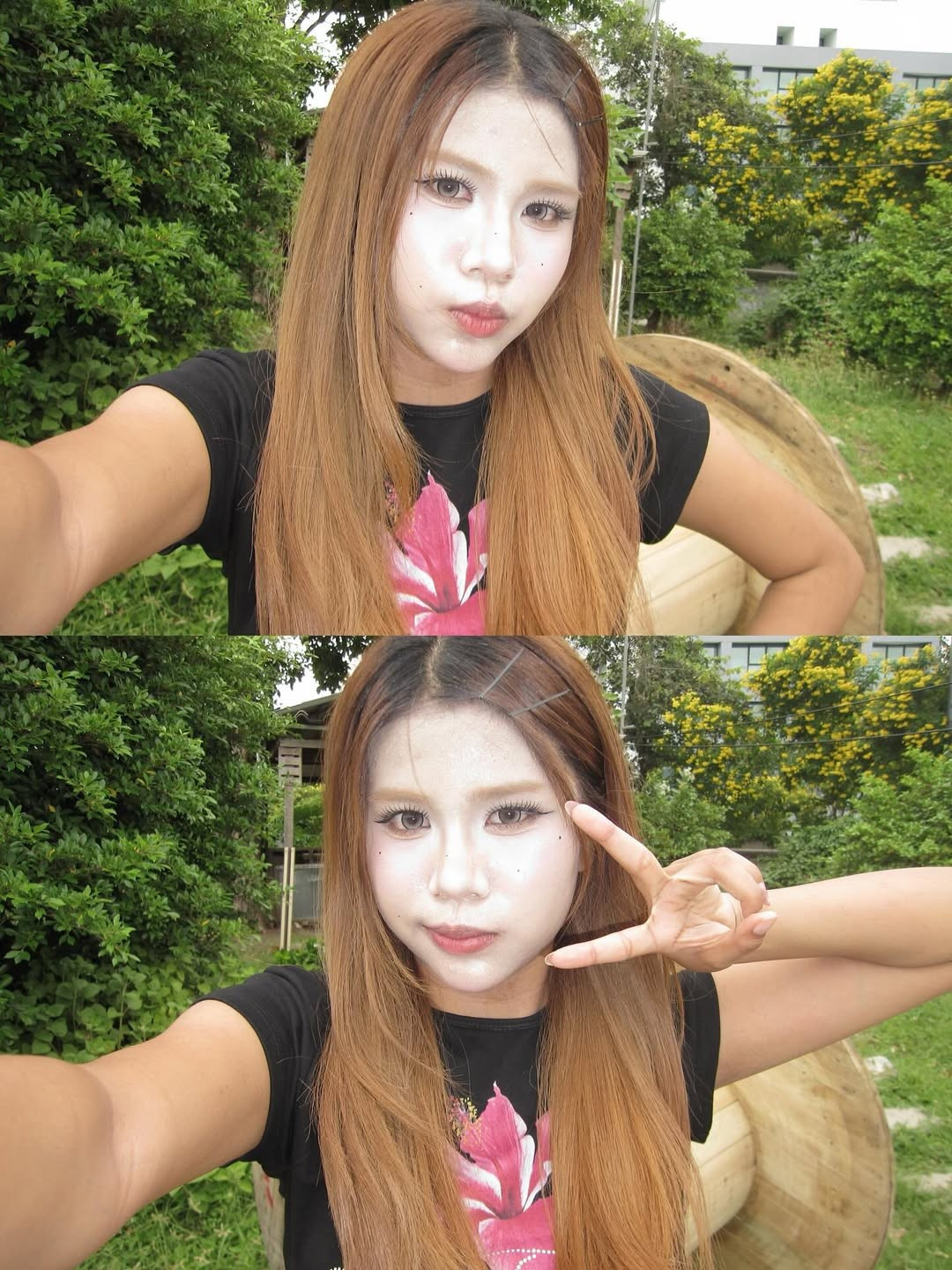 Trong nhiều bức ảnh, khuôn mặt cô dường như được phủ một lớp phấn trắng dày, đôi khi còn kèm theo hiệu ứng mắt to, tròn và má hồng nhẹ nhàng. (Ảnh: IGNV)