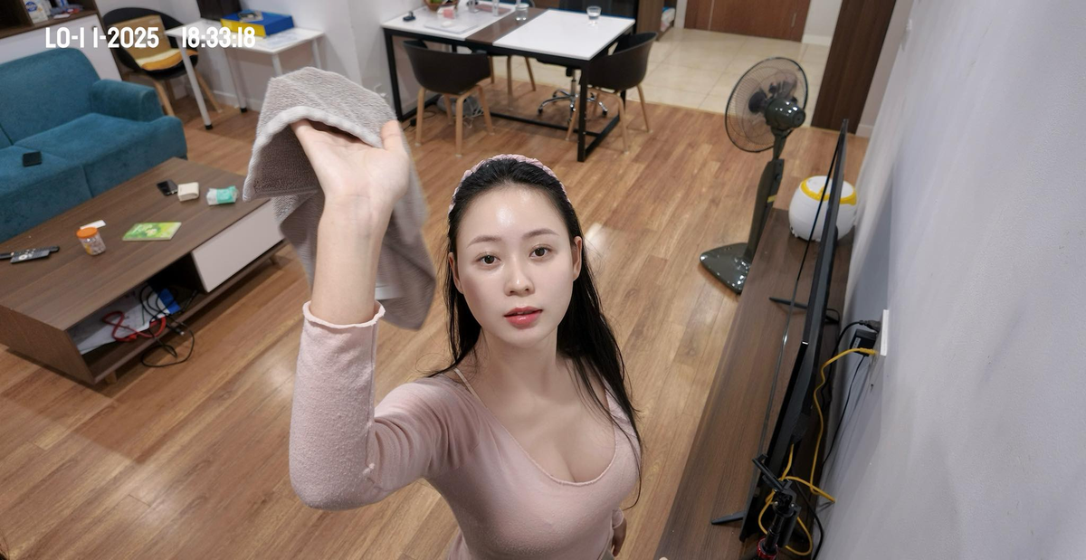 Trong hình, cô nàng đưa tay lên giả vờ lau camera với ánh mắt thẳng vào ống kính, tạo nên cảm giác vừa chân thật vừa đầy thu hút. Không ai ngờ chỉ một khoảnh khắc đơn giản như vậy lại tạo ra hiệu ứng vô cùng mạnh mẽ.