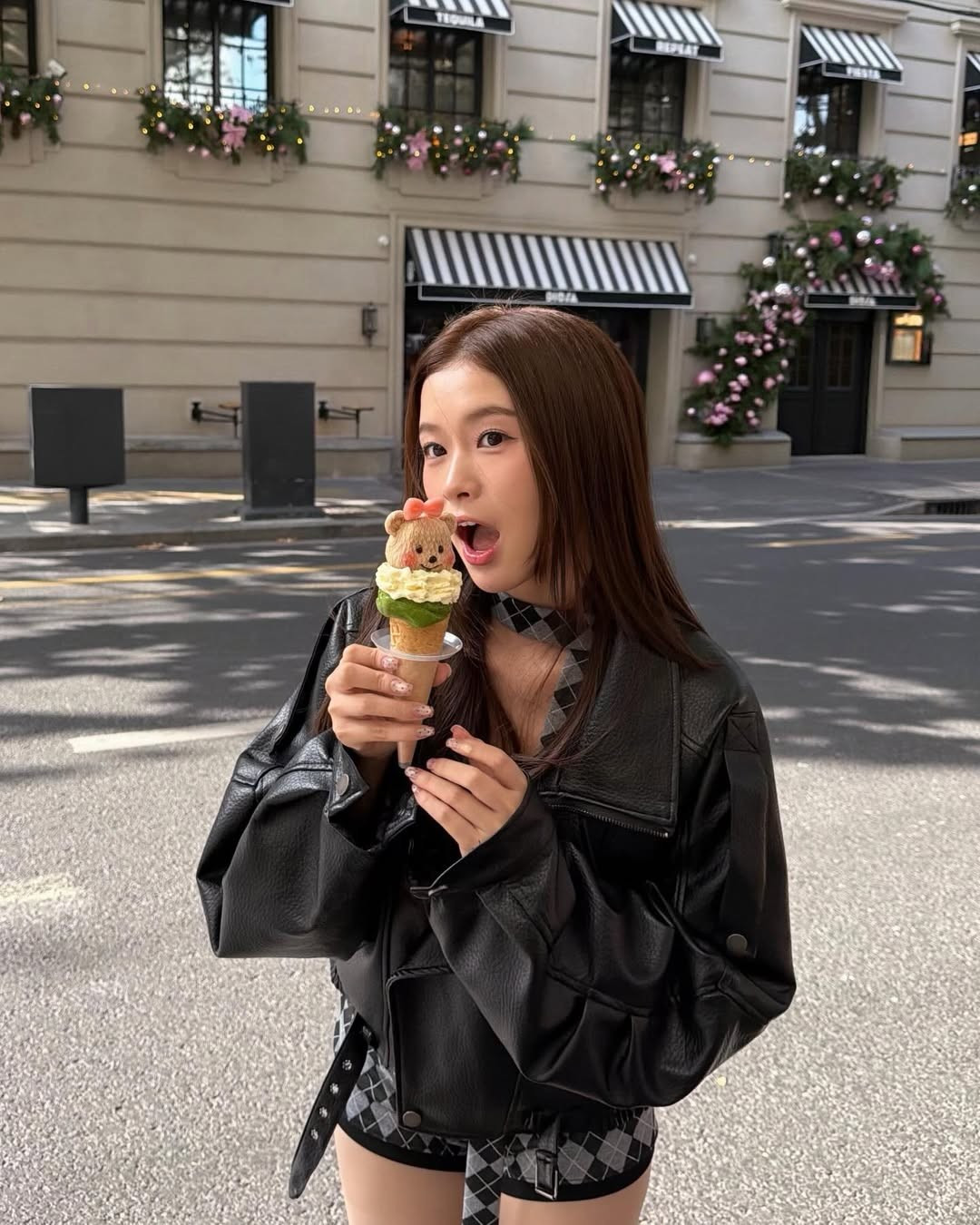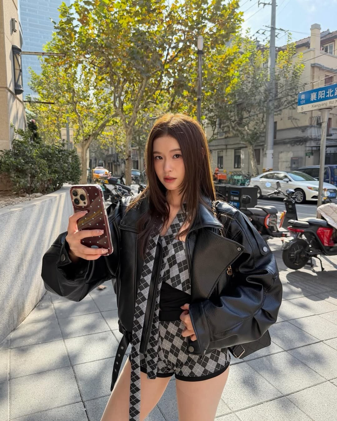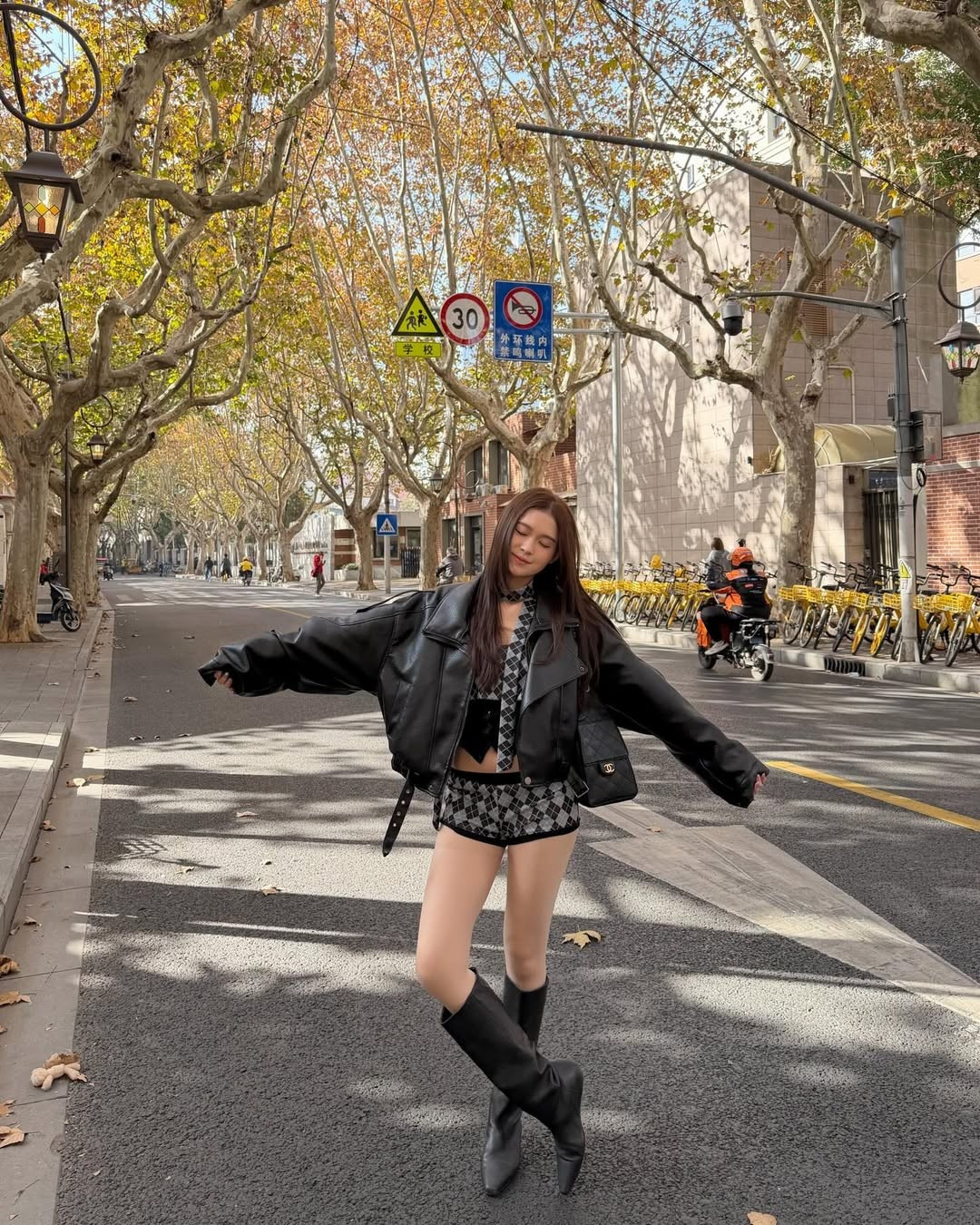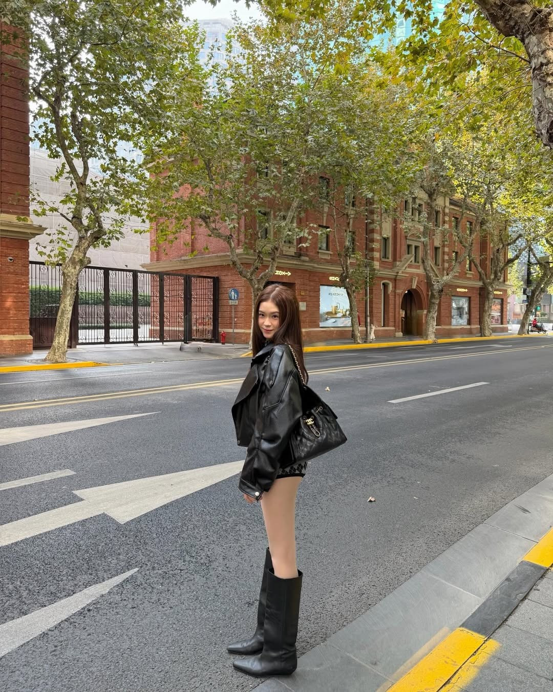 Trong chuyến đi lần này, Bùi Lê Mai Hương đã chọn phong cách Rock-Chic hiện đại, làm nổi bật lên vẻ ngoài cuốn hút và sành điệu giữa khung cảnh đường phố lãng mạn của Thượng Hải. (Ảnh: IGNV)
