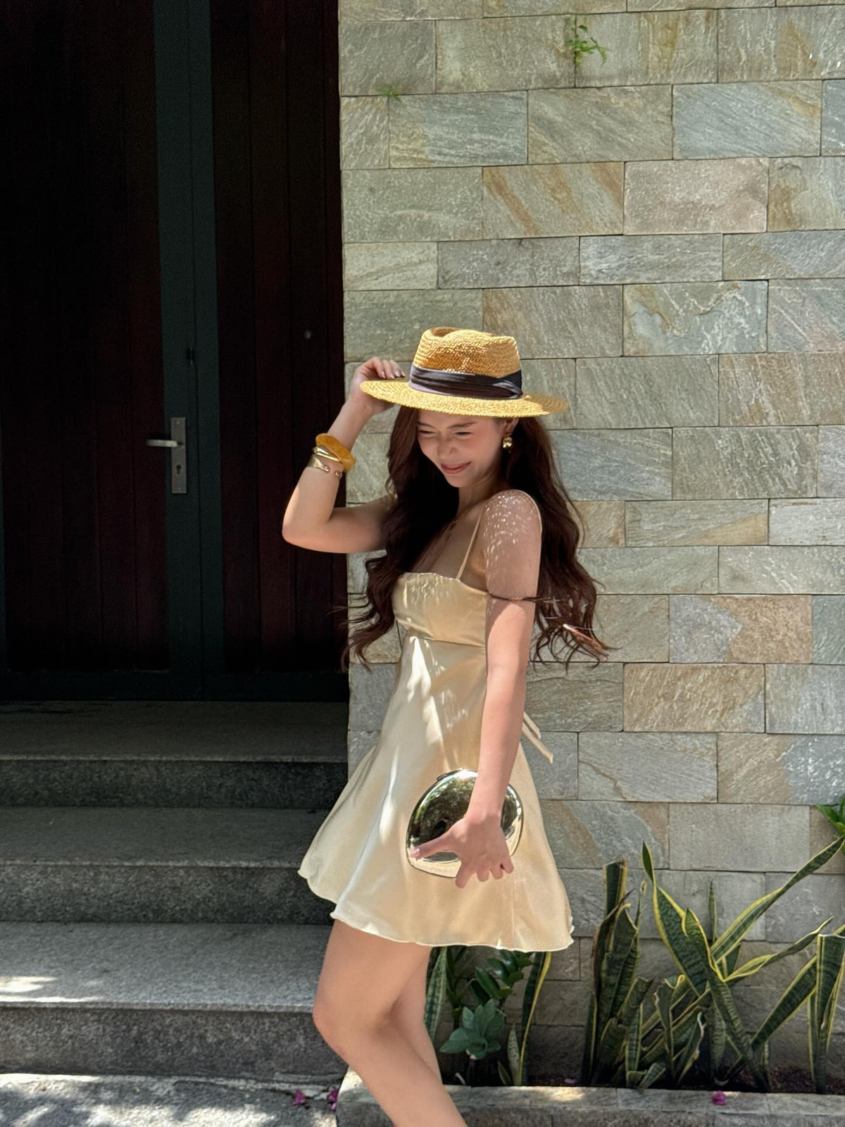 Chiếc váy màu xanh dịu mát kết hợp hài hòa với làn da trắng sứ của Hoàng Yến, tạo nên một tổng thể trang phục vừa tinh tế, vừa gợi cảm. (Ảnh: IGNV)