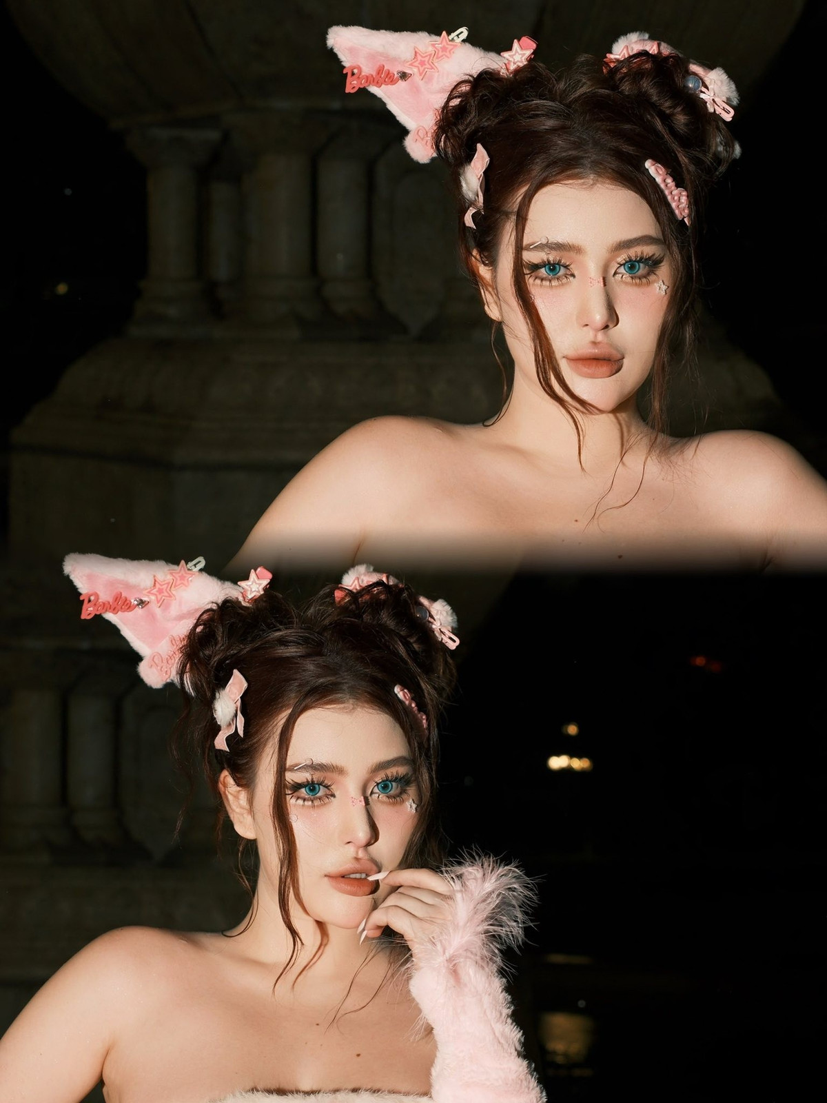 Mái tóc búi cao, đôi tai thỏ xinh xắn cùng phong cách trang điểm nhấn vào đôi mắt to tròn khiến tổng thể vừa đáng yêu, vừa quyến rũ “chết người”.