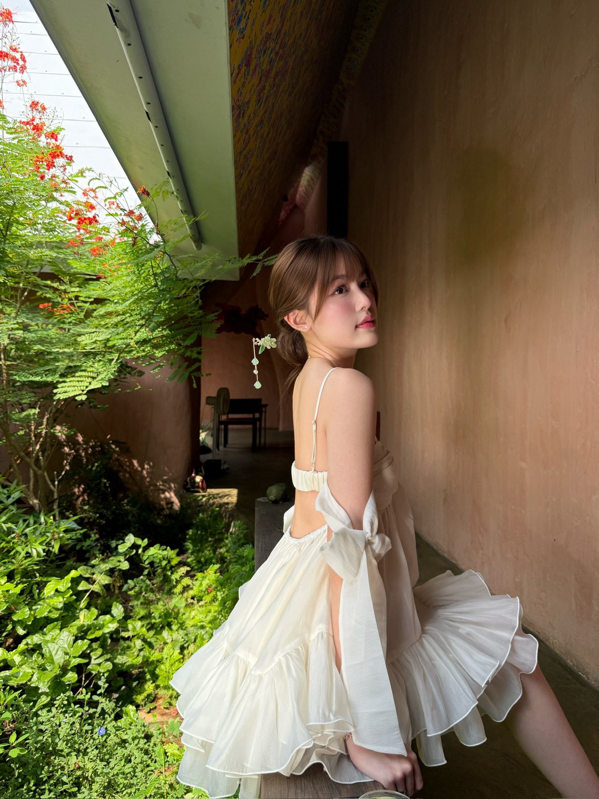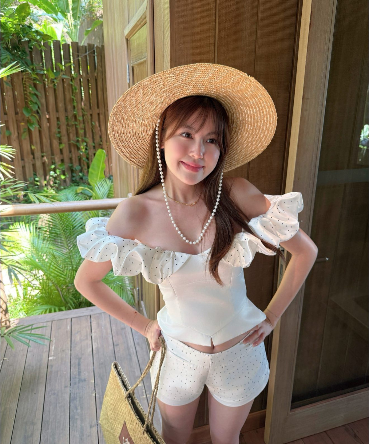 Trong vô số những lần xuất hiện, váy trắng dường như là "chân ái" của Tăng Mỹ Hàn. Màu trắng tinh khôi không chỉ tôn lên làn da không tì vết của cô nàng mà còn hoàn thiện vibe tiểu thư thanh lịch.