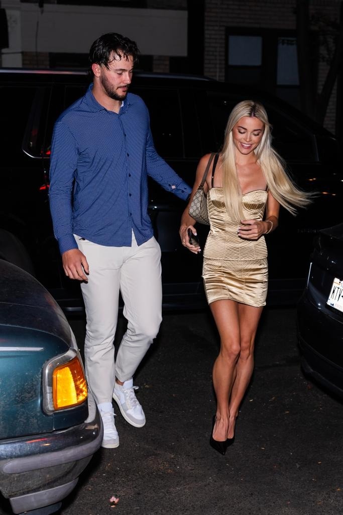 Một ngày trước sinh nhật 23 tuổi, người mẫu Sports Illustrated Swimsuit và cựu VĐV thể dục dụng cụ LSU xuất hiện trên đường phố New York với bộ váy ngắn ánh vàng, giày cao gót đen. Bên cạnh cô, Skenes (23 tuổi) diện áo sơ mi caro xanh, quần jeans sáng màu và giày sneaker trắng. Trong loạt ảnh đăng trên Instagram hôm 1/10 - đúng ngày sinh nhật - Dunne cầm ly martini trang trí kẹo màu và nến nhỏ, kèm chú thích dí dỏm: “A tini bit older” (tạm dịch: Hơi… già thêm chút).