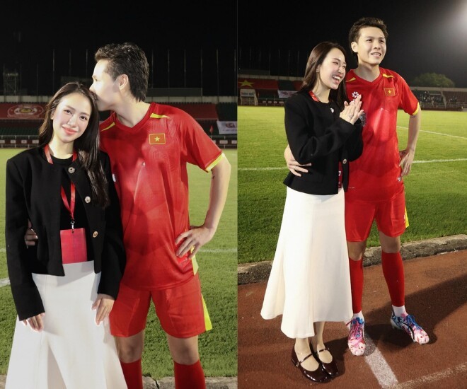 Xuất hiện trên khán đài sân bóng để cổ vũ chồng, Joyce Phạm - ái nữ nhà đại gia Minh Nhựa nhanh chóng trở thành tâm điểm chú ý. Không cần tạo dáng cầu kỳ hay ánh đèn sân khấu, mẹ 4 con vẫn nhận "mưa lời khen" bởi vóc dáng thon gọn, thần thái rạng rỡ dù lọt vào ống kính chụp vội.