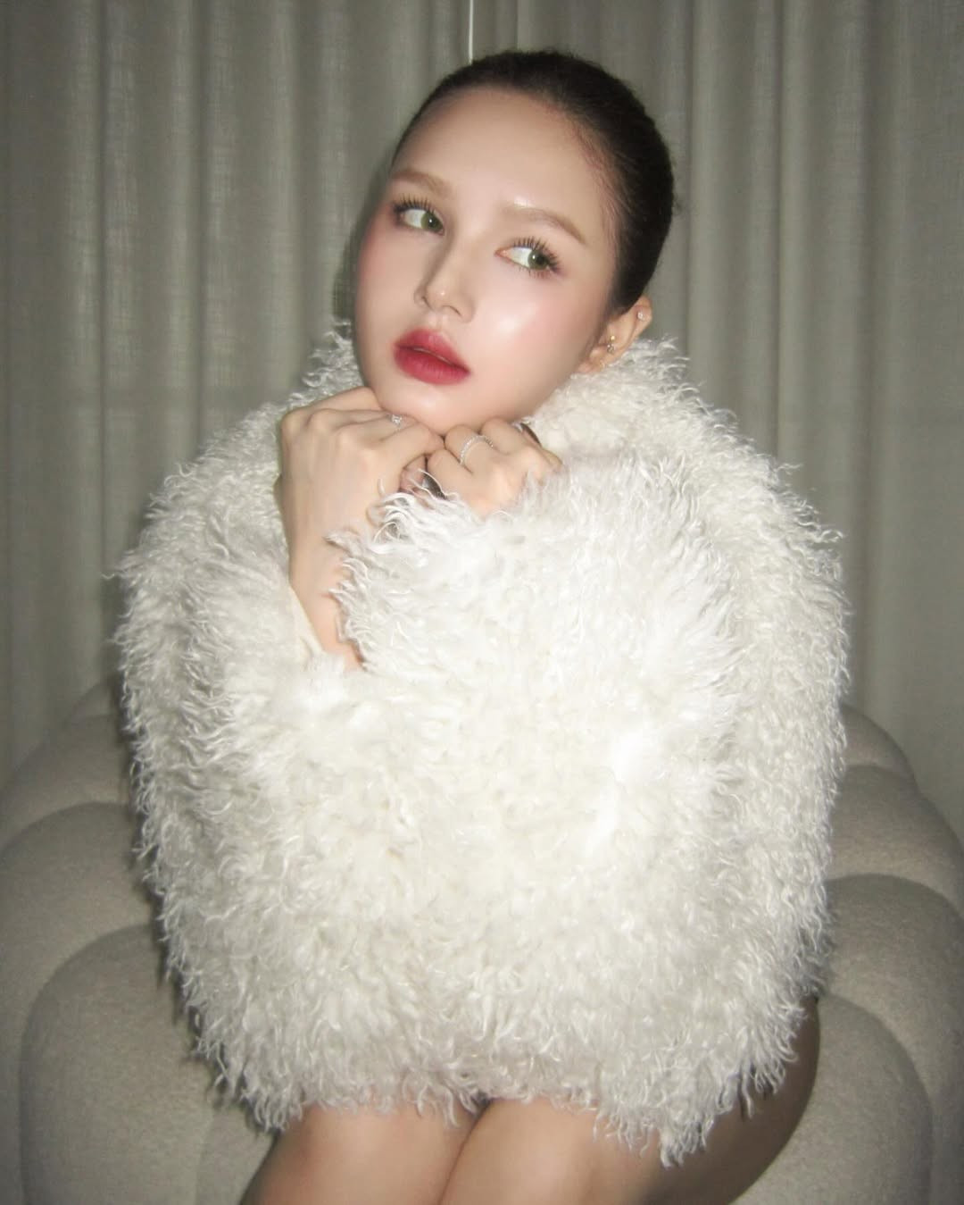 Việc kết hợp áo lông thú trắng muốt cùng đôi giày cao gót mũi nhọn sang trọng của YSL cho thấy sự đầu tư chỉn chu về hình ảnh, hướng đến sự đẳng cấp và thời thượng. (Ảnh: IGNV)