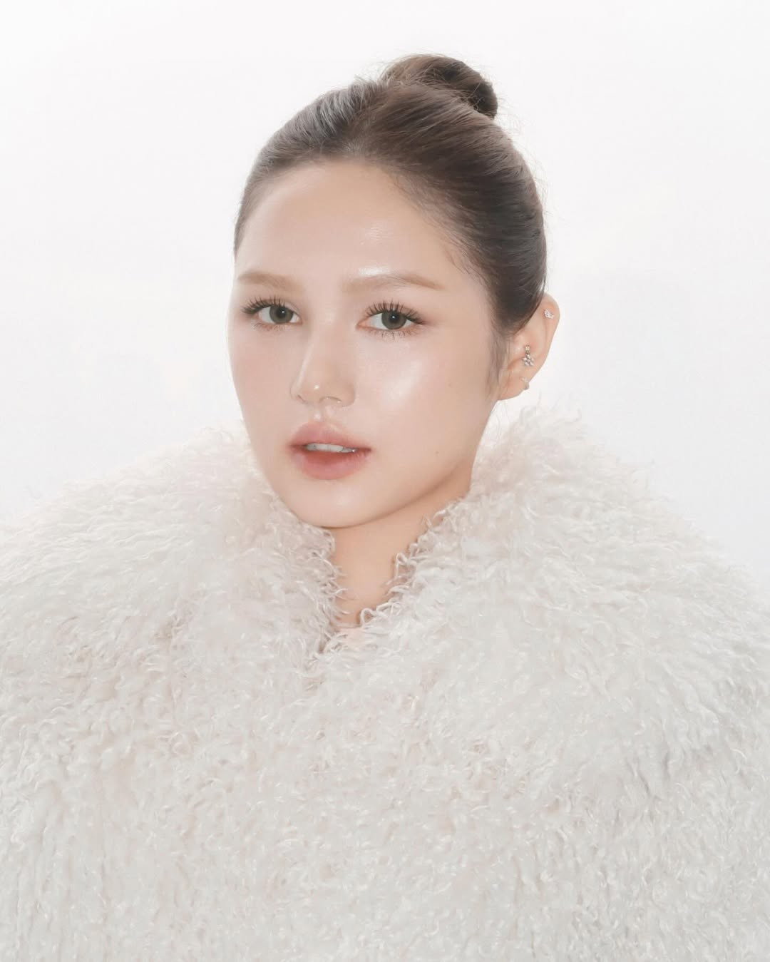 Cô chọn lối trang điểm nhấn vào đôi mắt sâu hút hồn và bờ môi mướt mát, kết hợp cùng kiểu tóc búi cao gọn gàng, giúp tôn vinh trọn vẹn gương mặt thanh tú. (Ảnh: IGNV)