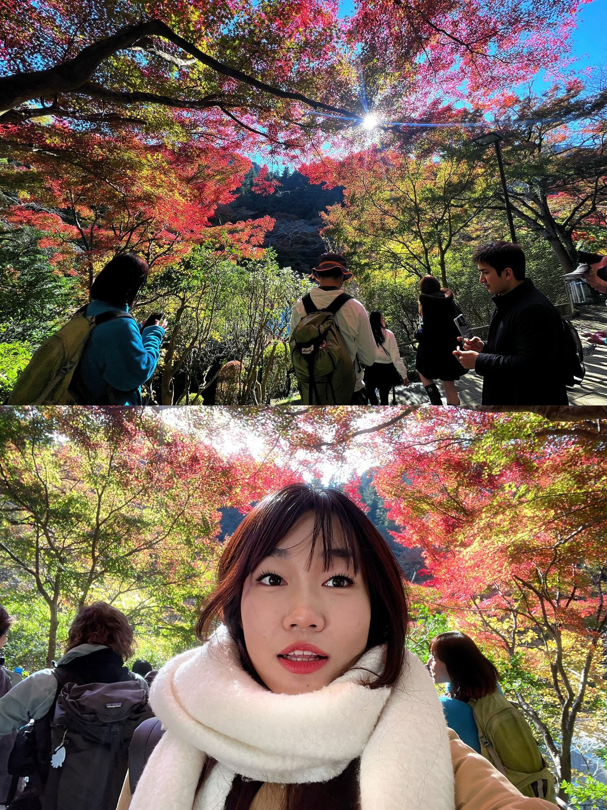 Lê Thụy đã có những bức ảnh trùng với thời điểm đẹp nhất của mùa lá đỏ (momiji) và lá vàng (ginkgo), khiến bộ ảnh check-in của cô càng thêm phần giá trị và "gây thương nhớ". Đây chắc chắn sẽ là một trong những bộ ảnh du lịch mùa thu truyền cảm hứng nhất trên mạng xã hội thời gian này.