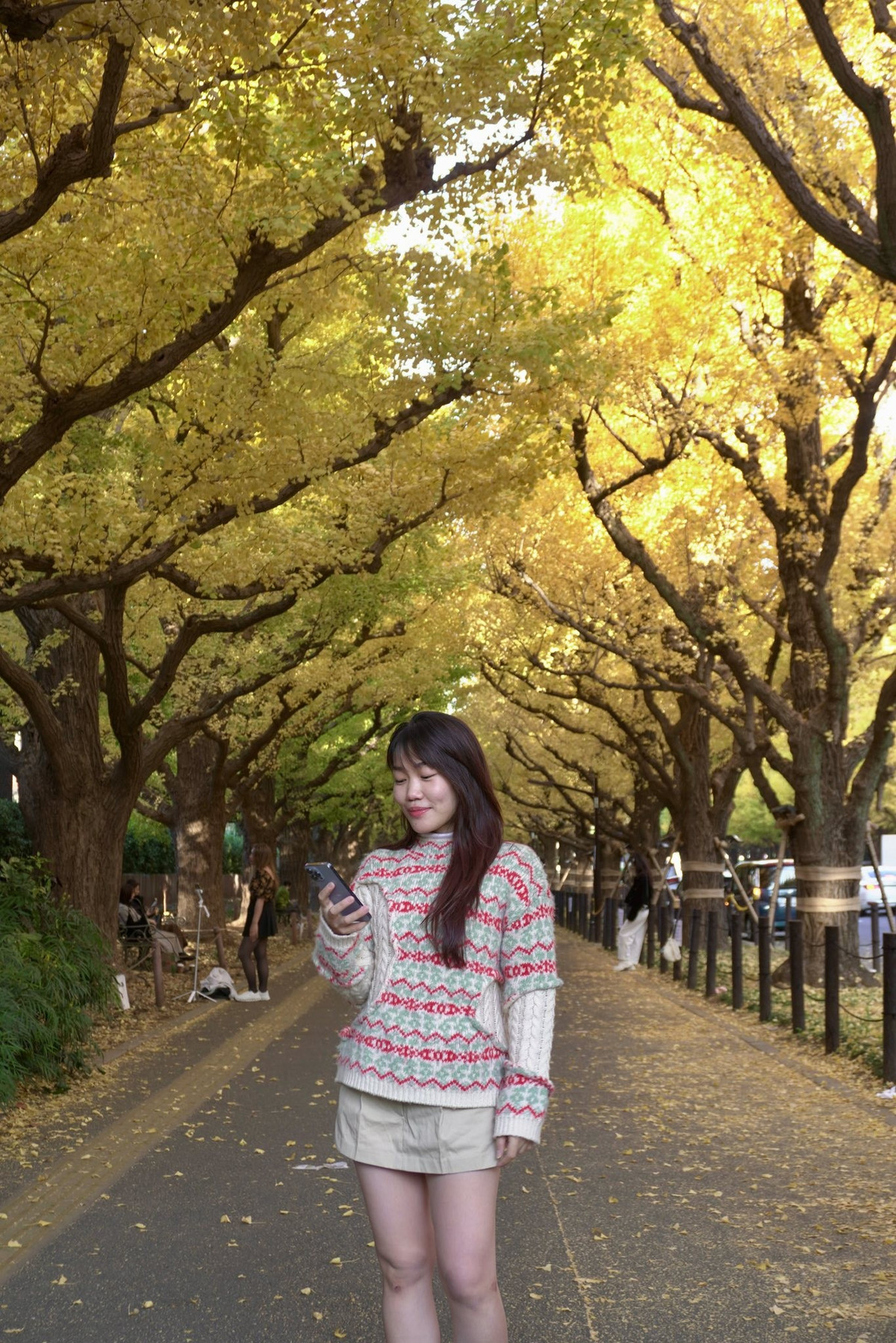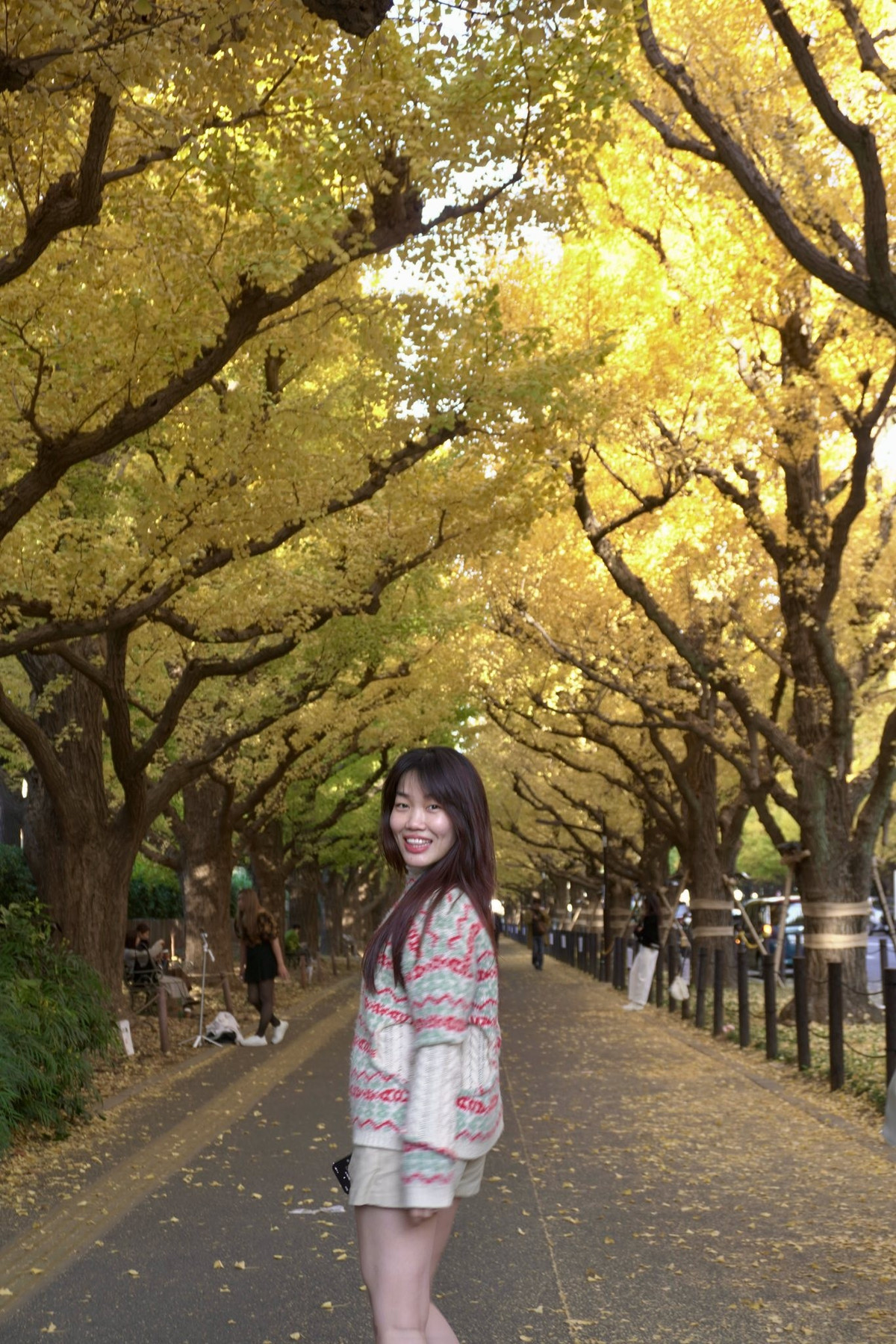 Đây là khoảnh khắc mùa thu trứ danh của Nhật Bản khi hàng loạt cây ginkgo (rẻ quạt) đồng loạt chuyển sang màu vàng rực rỡ, tạo nên một "đường hầm vàng" đẹp như tranh vẽ. Từng lớp lá vàng phủ kín mặt đất, kết hợp với ánh nắng dịu nhẹ, tạo nên một khung cảnh vô cùng thơ mộng.