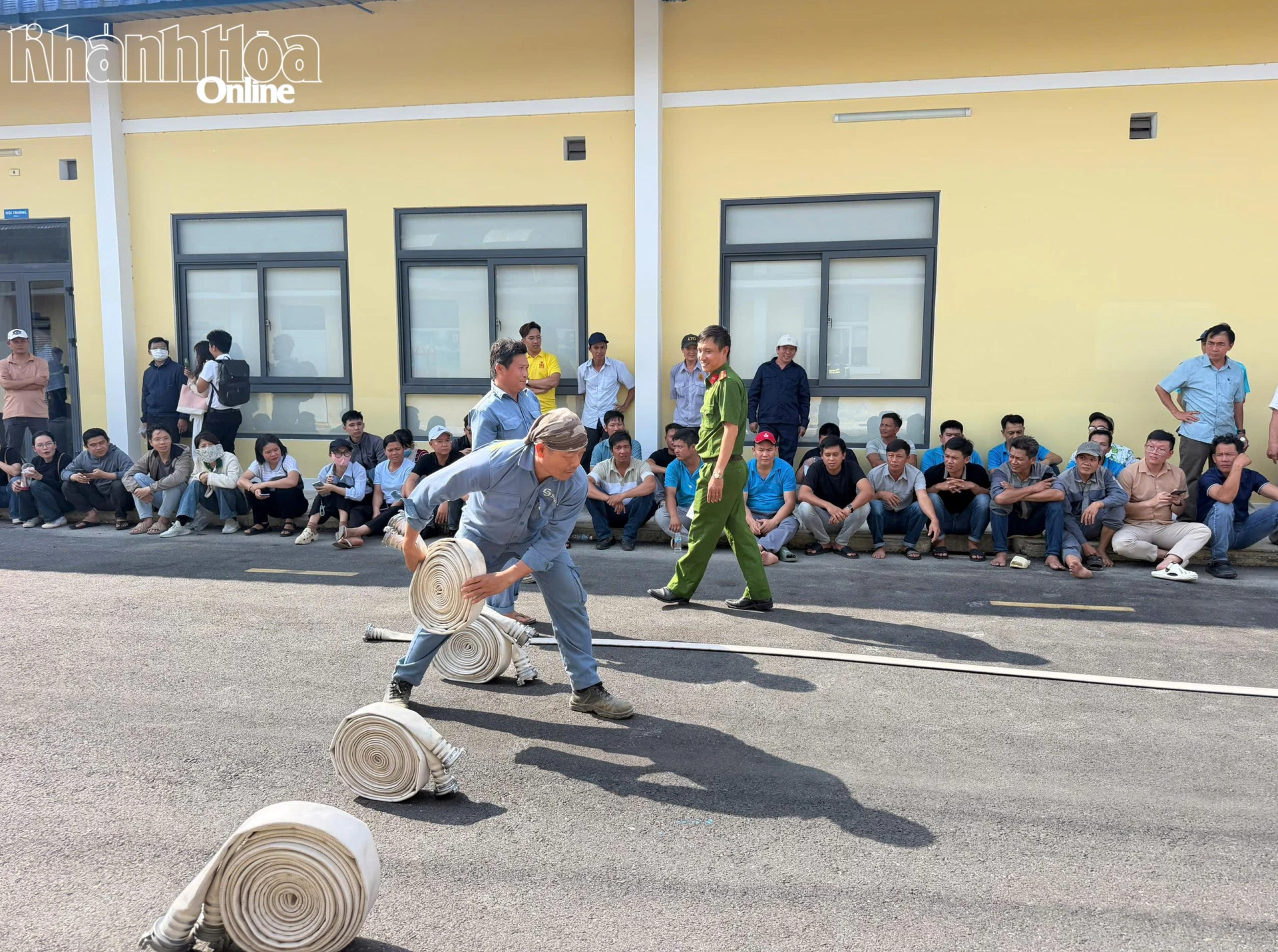 Thực hiện kế hoạch tổ chức huấn luyện nghiệp vụ phòng cháy, chữa cháy (PCCC) và cứu nạn, cứu hộ (CNCH) trên địa bàn, vừa qua, tại Cụm Công nghiệp Diên Phú (xã Diên Điền), Đội Chữa cháy và CNCH Khu vực 9 (Phòng Cảnh sát PCCC và CNCH, Công an tỉnh Khánh Hòa) phối hợp với đơn vị quản lý cụm công nghiệp tổ chức tuyên truyền, huấn luyện kỹ năng PCCC và CNCH cho 180 cán bộ, công nhân viên thuộc các doanh nghiệp trong cụm.