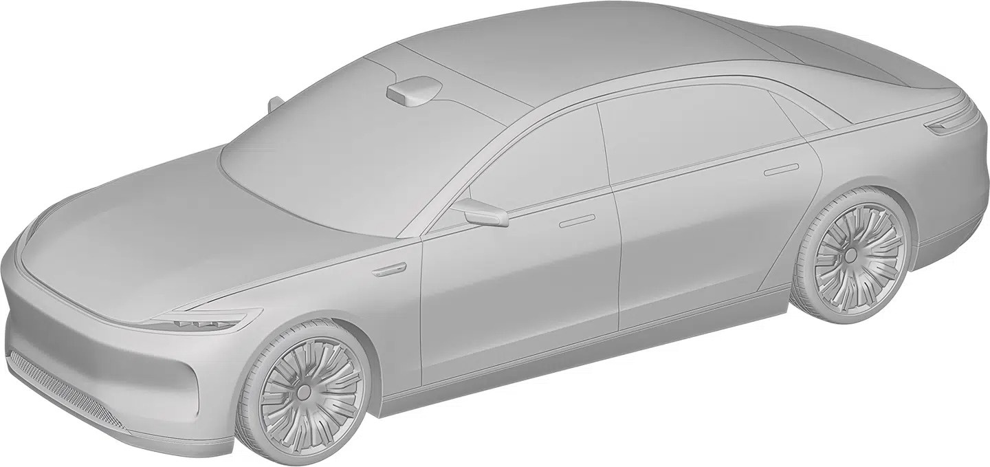 Bản vẽ thứ 2 là một mẫu sedan hạng siêu sang tương tự Maextro S800. Đặc điểm nhận dạng nổi bật là cảm biến LiDAR trên nóc và gương chiếu hậu kỹ thuật số.