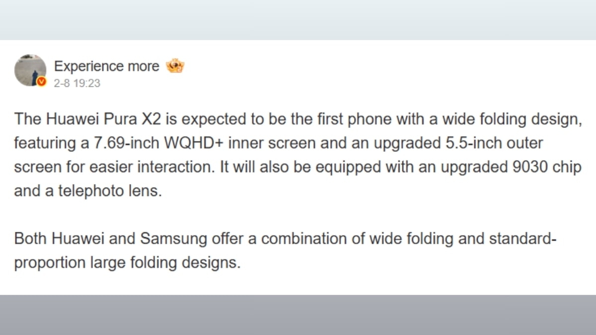 Cả hai màn hình của Huawei Pura X2 sẽ được nâng cấp với kích thước lớn hơn
