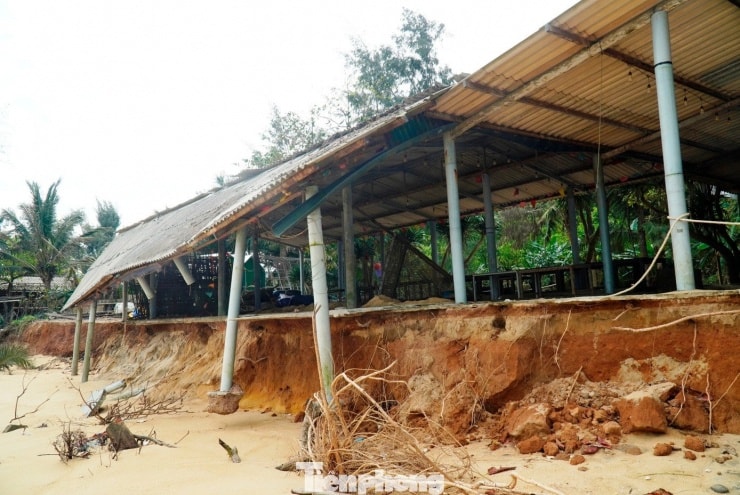 Anh Hoàng Trọng Quang, một chủ nhà hàng tại bãi tắm, cho biết mức độ tàn phá lần này vượt xa mọi dự đoán. "Quán tôi từng có hai hàng dừa cách mép nước biển hơn 30m. Nay sóng đánh trôi hết, cuốn đi cả phần chân móng rồi làm sập quán. Cảnh tượng này chưa từng xảy ra ở nơi đây", anh Quang chia sẻ.