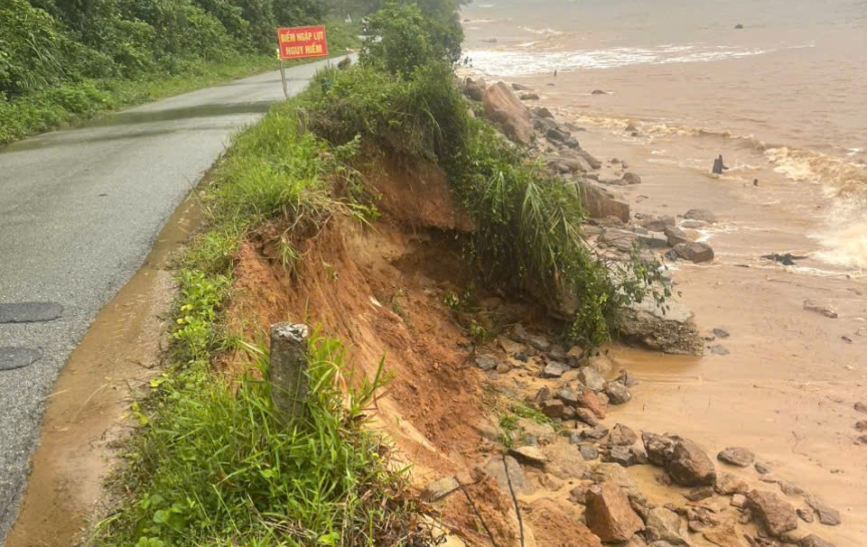 Ông Nguyễn Văn Hiệp, Chủ tịch UBND xã Phú Lộc thông tin, do ảnh hưởng của bão số 12, mưa lớn, triều cường đã làm sạt lở tuyến đường ven biển Hải Bình có nguy cơ bị cuốn trôi ra biển, gây chia cắt đi lại của người dân sinh sống trong khu vực.