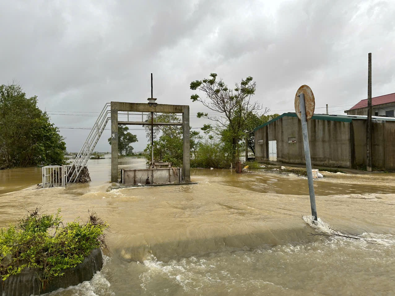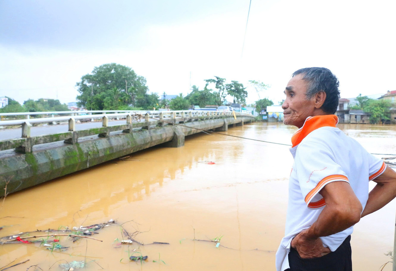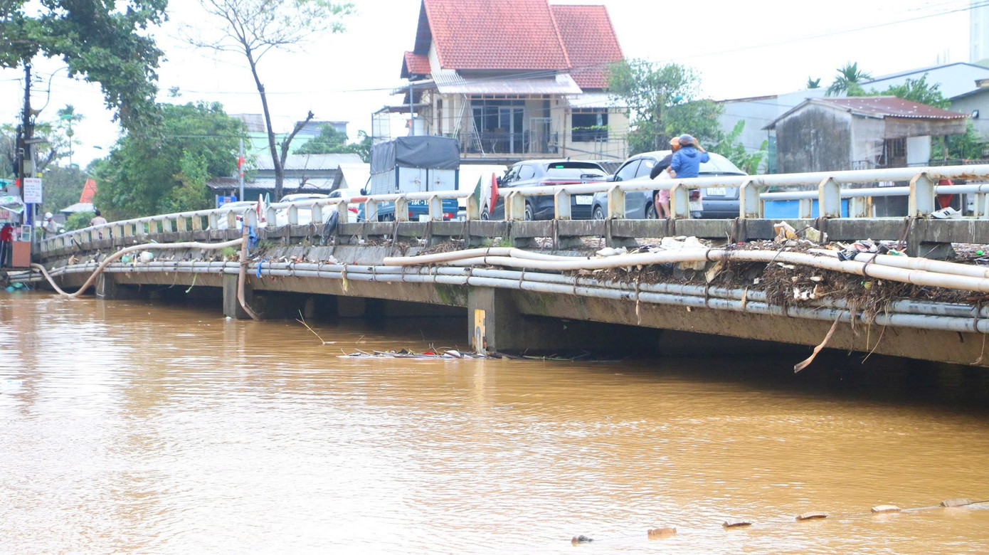 Nước lũ mấp mé thân cầu Vân Dương, phường Vỹ Dạ, Huế.