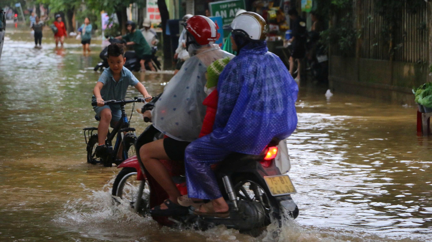 Theo ghi nhận của PV, mưa rất lớn cùng với lũ dâng cao kéo theo tình trạng ngập úng ở nhiều khu vực đô thị như An Cựu, Thuận Hóa, Ngô Đức Kế, Thánh Gióng, Phú Xuân, Phú Bài với mực nước từ 0,3 - 0,5 m. Các vùng thấp trũng của xã Quảng Điền, phường Hóa Châu cũng chịu ngập lụt tương tự.