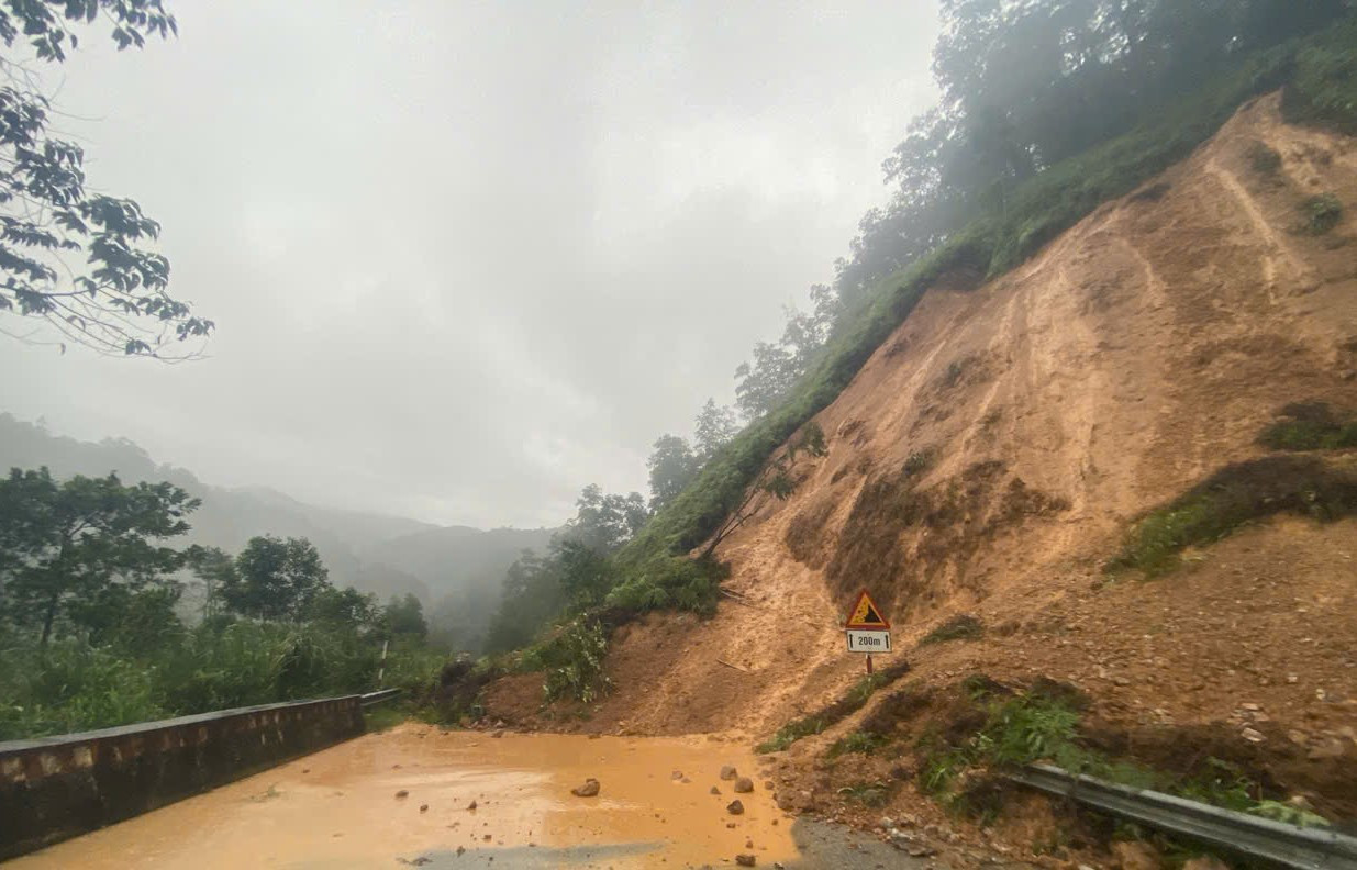 Tuyến Quốc lộ 49 qua vùng núi A Lưới bị sạt lở đất, ảnh hưởng giao thông đi lại.