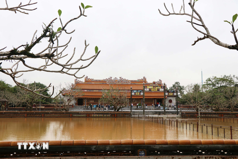 Đại Nội Huế mưa ngập đầu tháng 11/2025. (Ảnh: Nguyên Lý/TTXVN)