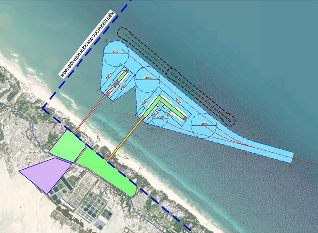 Giai đoạn 1 (2026 - 2030): Đầu tư hai cầu cảng dài 340 m, có khả năng tiếp nhận tàu đến 10.000 tấn và 5.000 tấn, cùng khu neo chuyển tải cho tàu 50.000 tấn.