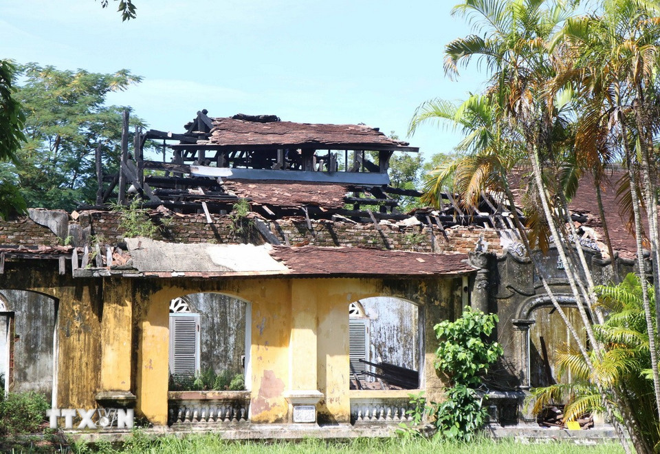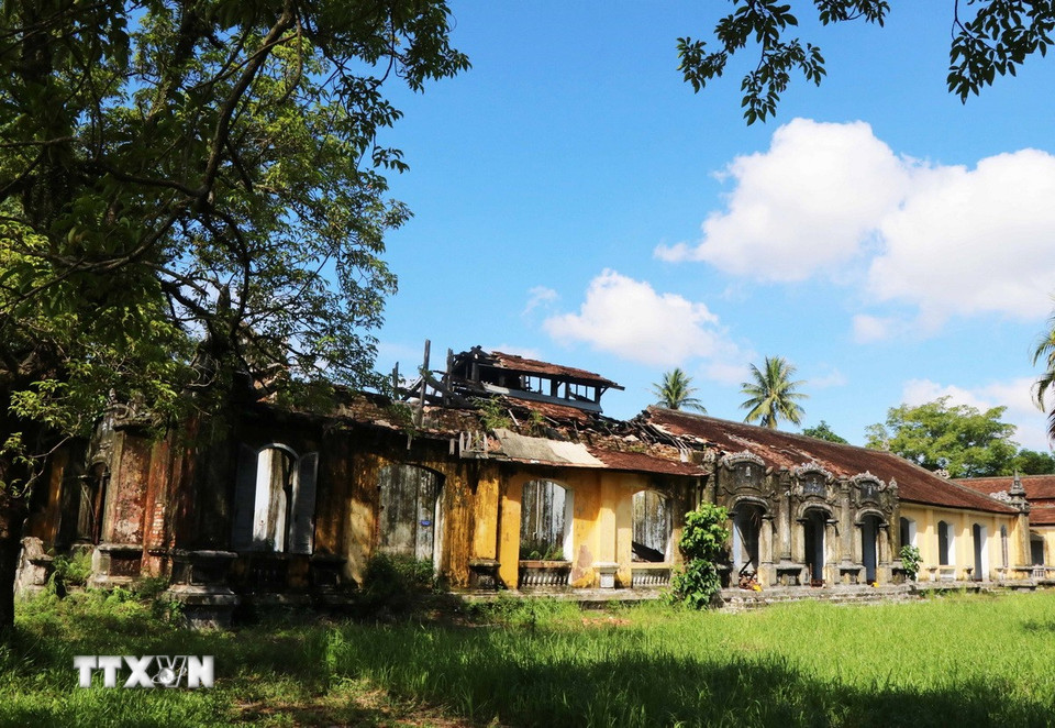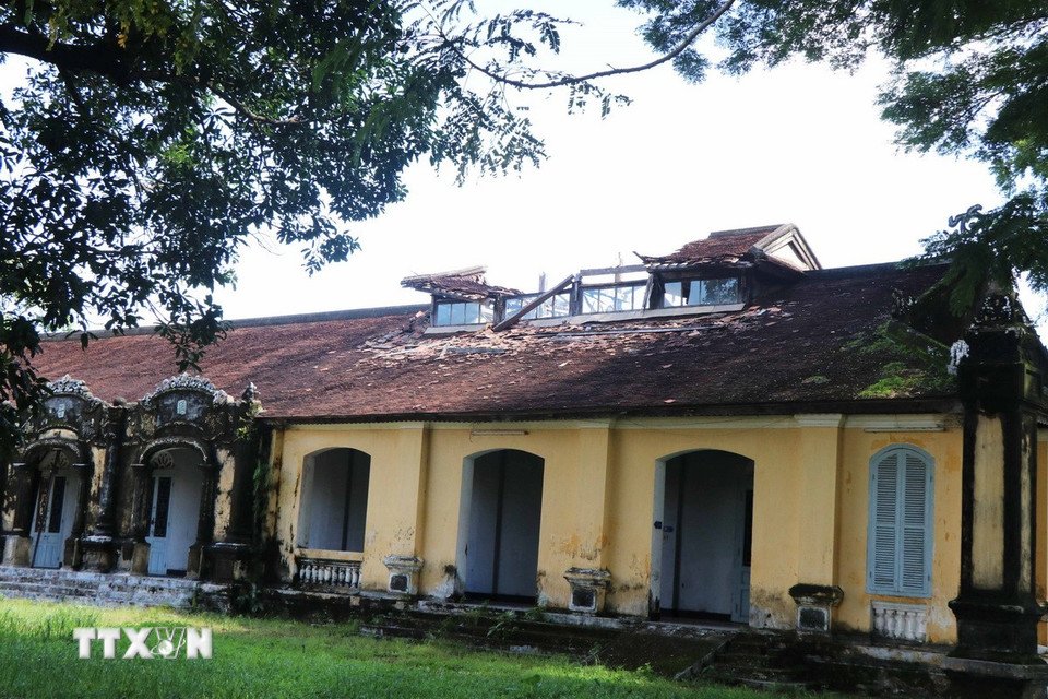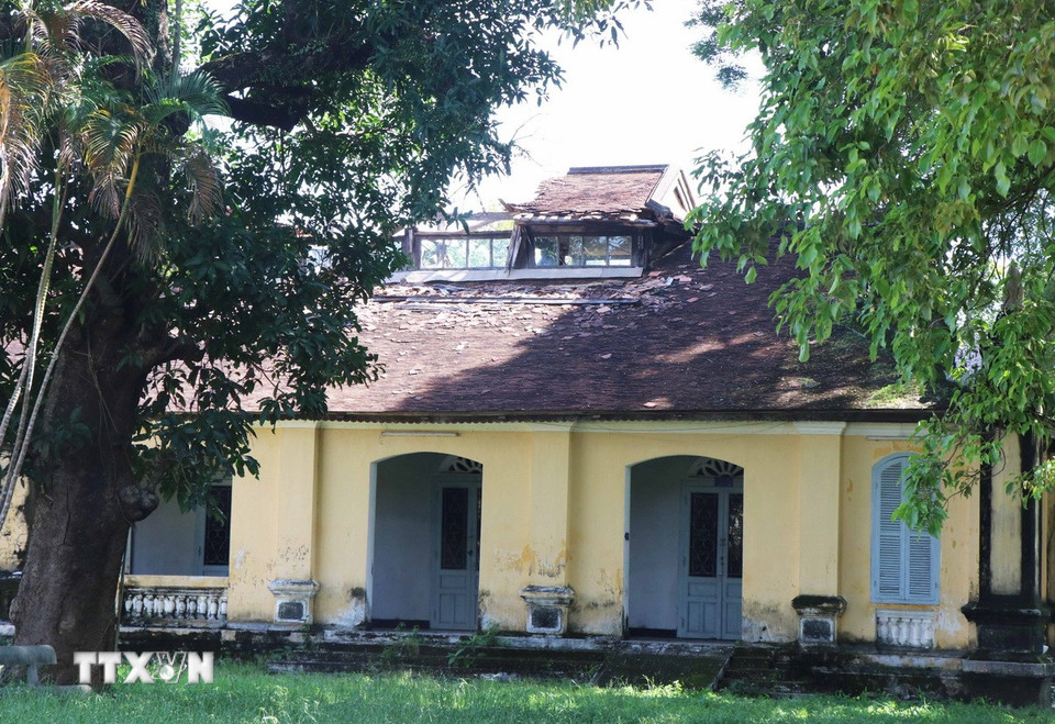 Nhà học hữu thuộc Di tích Quốc Tử Giám, thành phố Huế đã xuống cấp, hư hỏng nghiêm trọng. (Ảnh: Nguyên Lý/TTXVN)