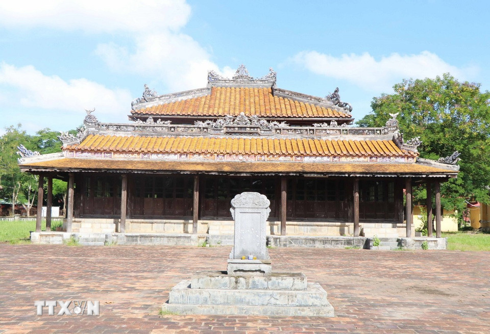 Khi trùng tu, Bia Huỳnh Tự Thư Thanh thuộc Di tích Quốc Tử Giám, thành phố Huế sẽ có nhà che. (Ảnh: Nguyên Lý/TTXVN)