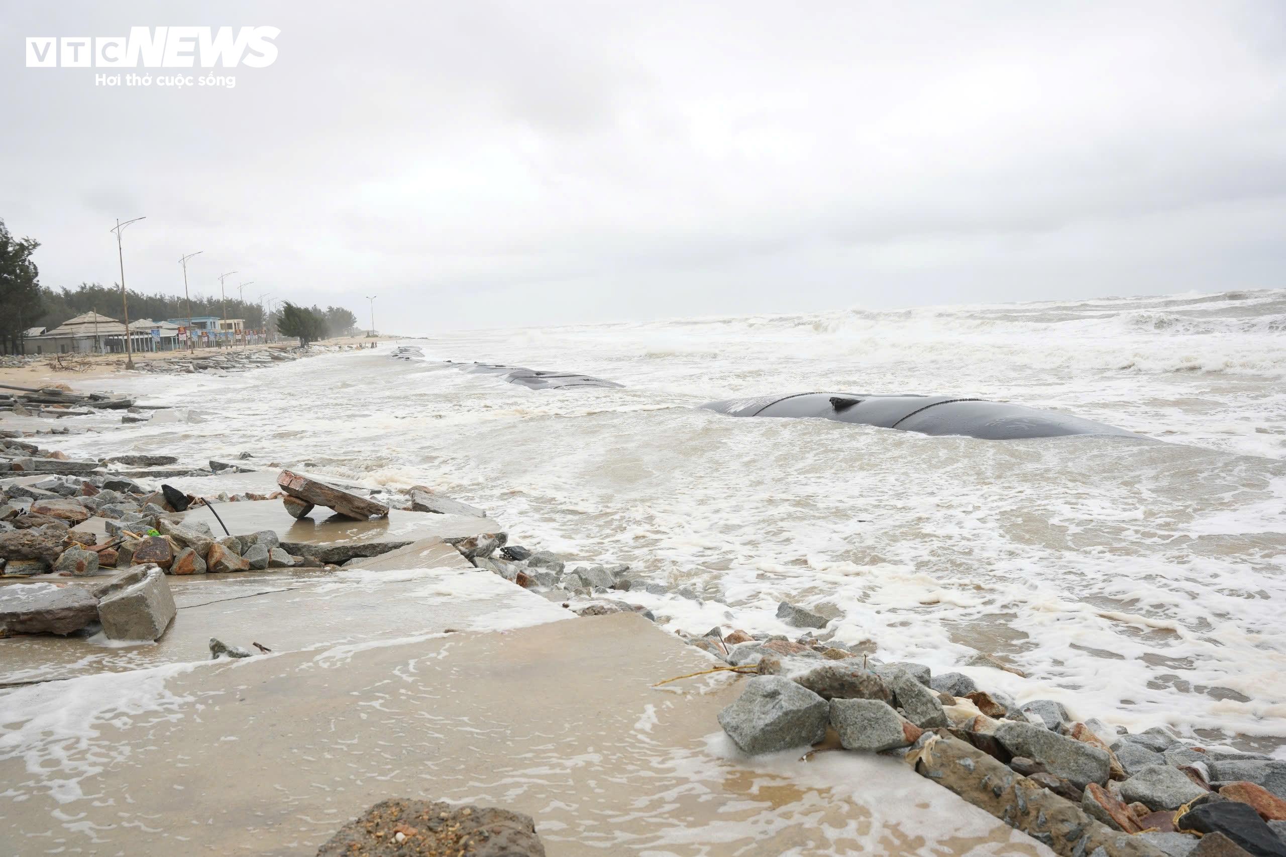 Dù trước đó một dãy kè mềm được đầu tư xây dựng nhằm ngăn tình trạng sạt lở bờ biển nhưng do sóng biển quá cao, nước dâng khiến việc xâm thực vẫn diễn ra dù bão chưa đổ bộ.